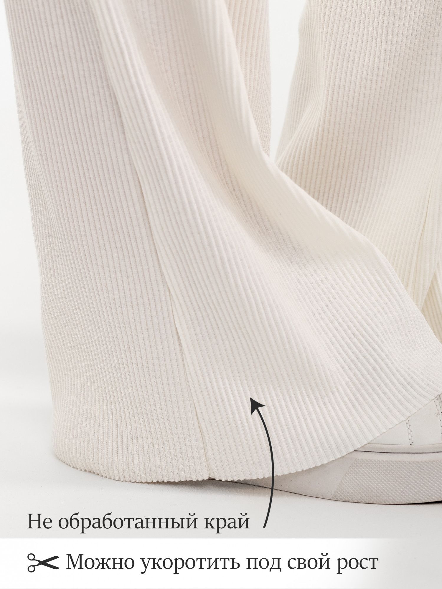 Низ брюк не обработан, это особенность модели, чтобы удобно было обрезать длину под свой рост.