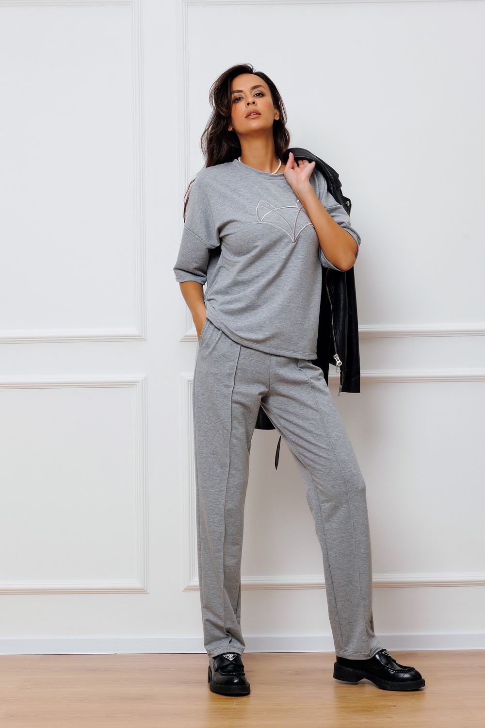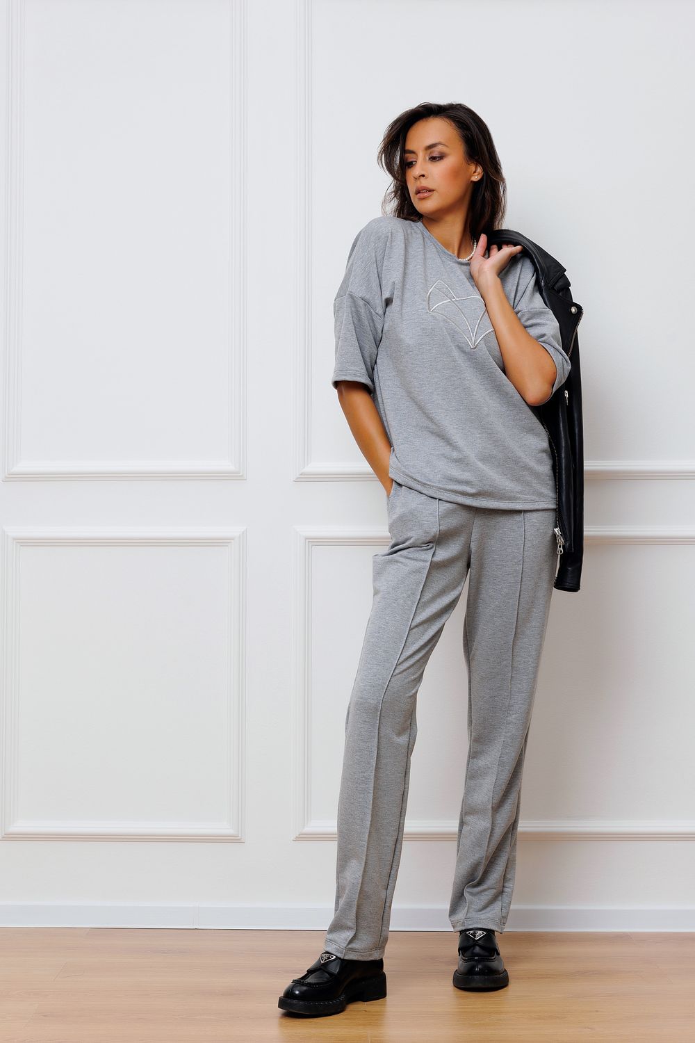 Брюки женские трикотажные со стрелкой 343 - светло серый
