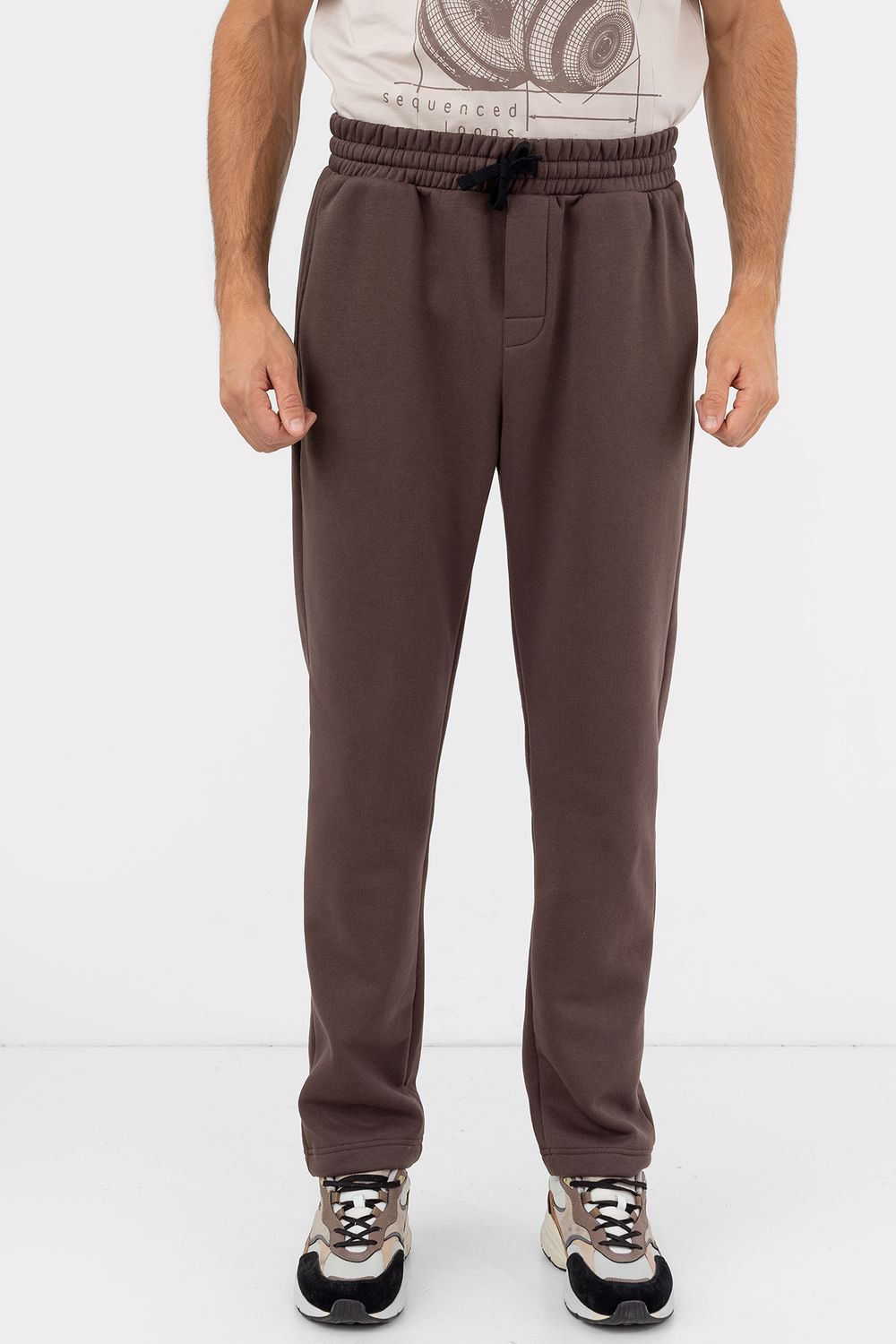 Прямые свободные брюки для мужчин. Выполнены из тёплого футера с подчёсом. Пояс – с эластичной тесьмой внутри и шнурком-завязкой, который позволяет регулировать ширину в талии. Есть удобные боковые карманы. Гульфик – не функциональный, имитация. Штанины подогнуты. Рекомендуем!