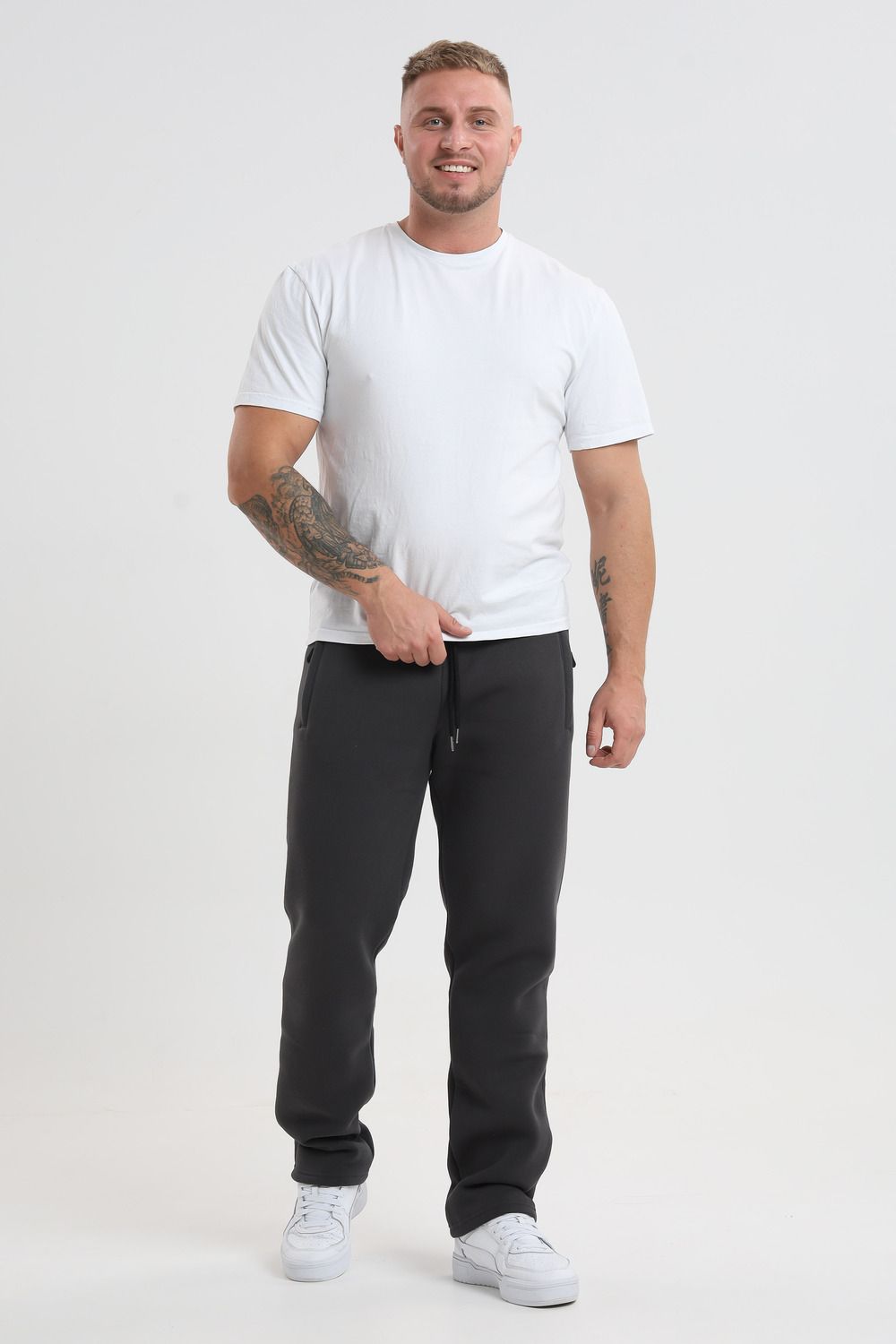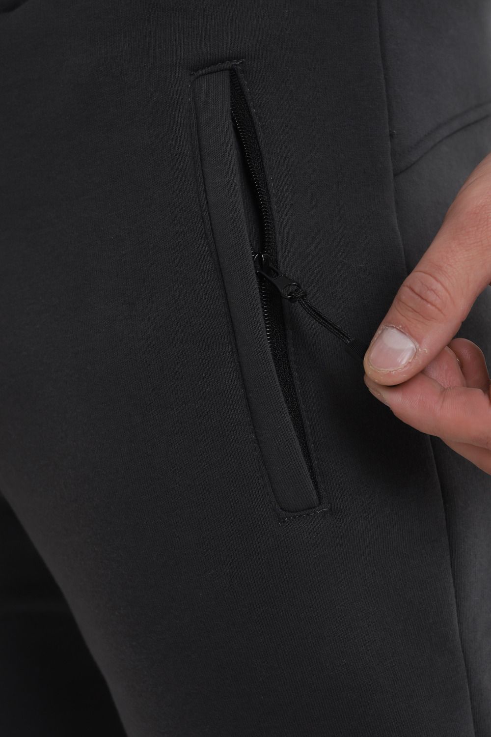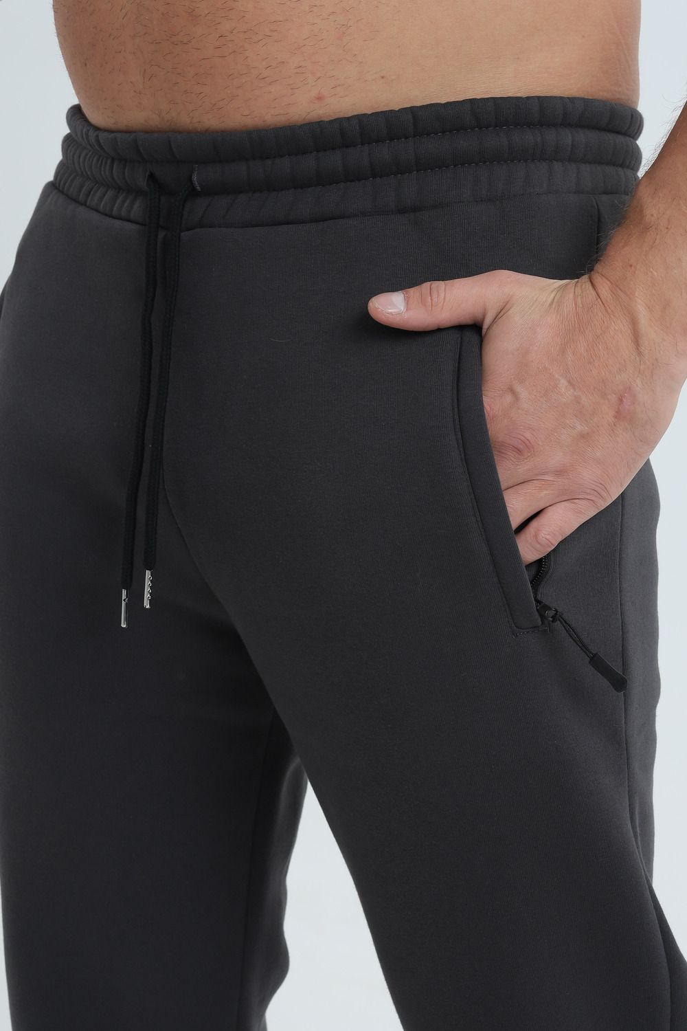 Базовые спортивные брюки с начесом прямого кроя, с двумя карманами на молнии, пояс на резинке со шнурком, сзади декоративный шов. Штаны изготовлены из высококачественной ткани, не скатываются, не вытягиваются и отлично держат форму. Подойдут для повседневной прогулки, для спорта на открытом воздухе.