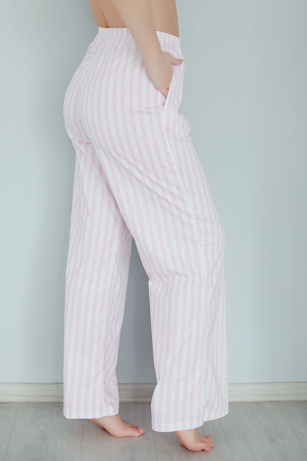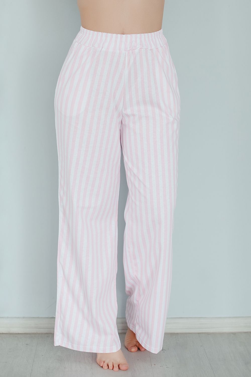 Брюки палаццо домашние широкие красная клетка - полоса розовая