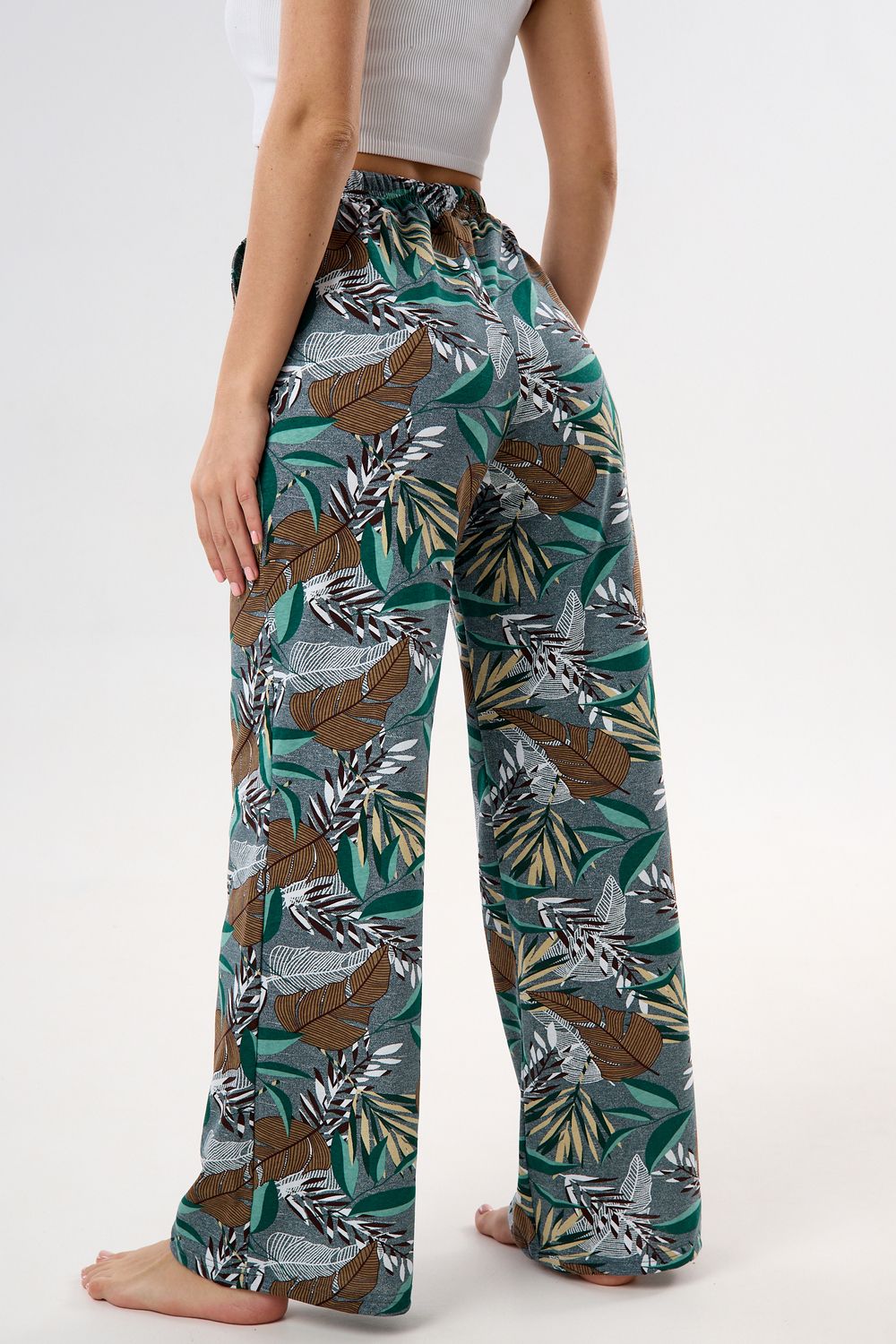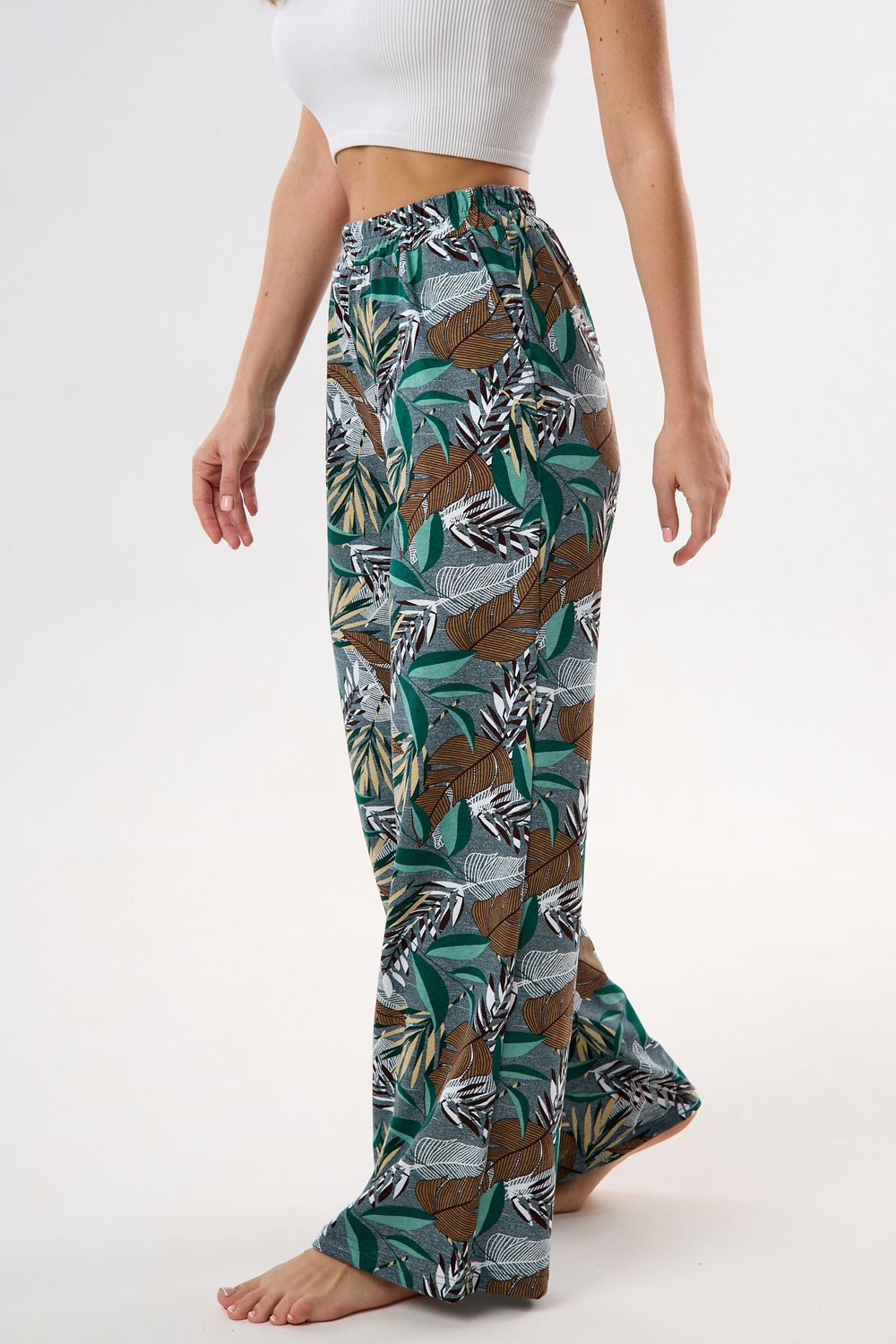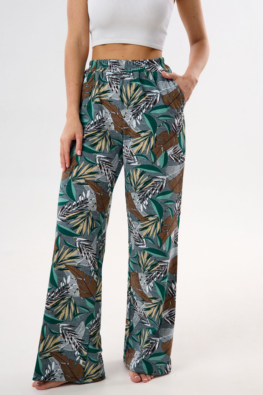 Брюки палаццо домашние широкие - зеленый