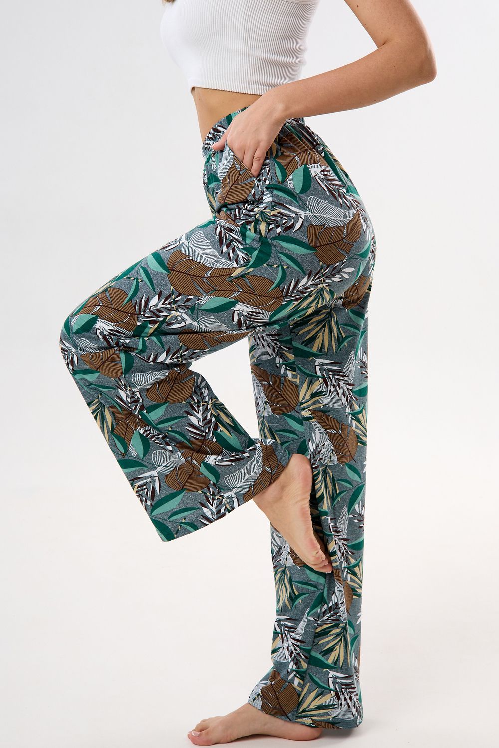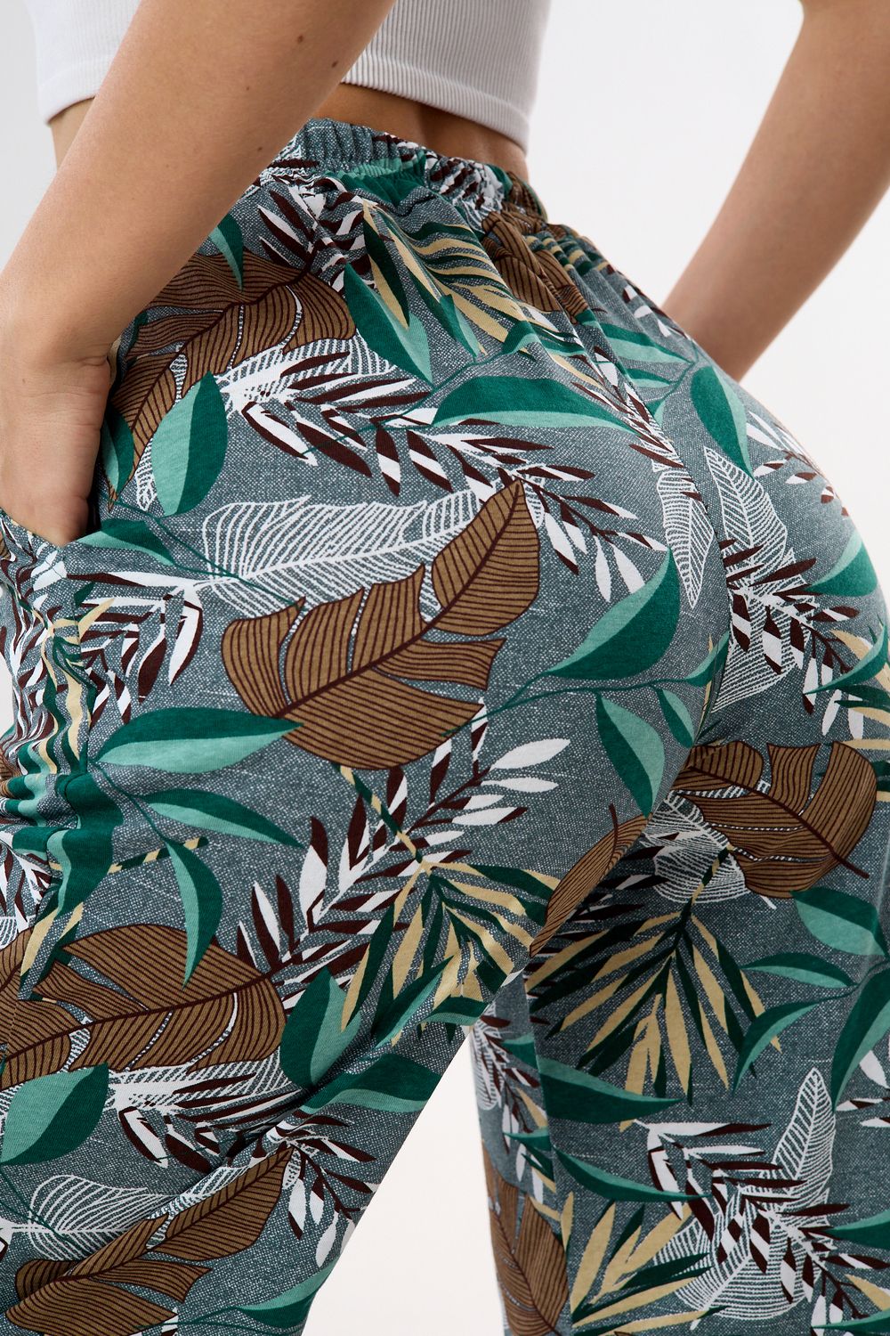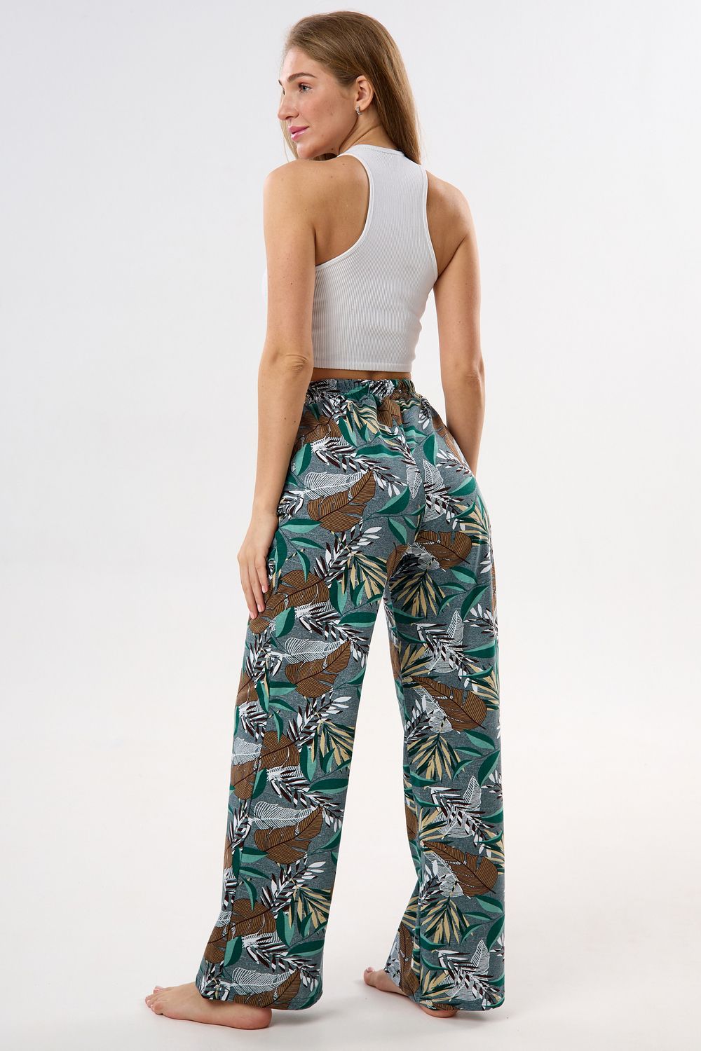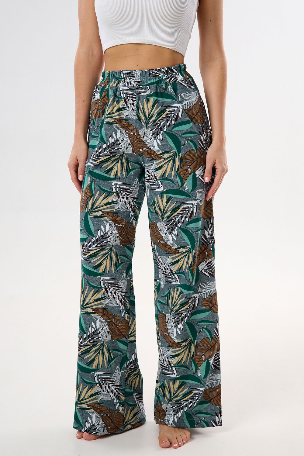 Брюки палаццо домашние широкие - зеленый
