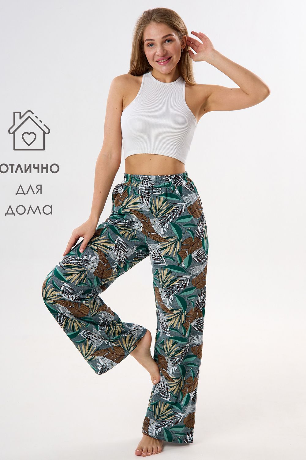 Брюки палаццо домашние широкие