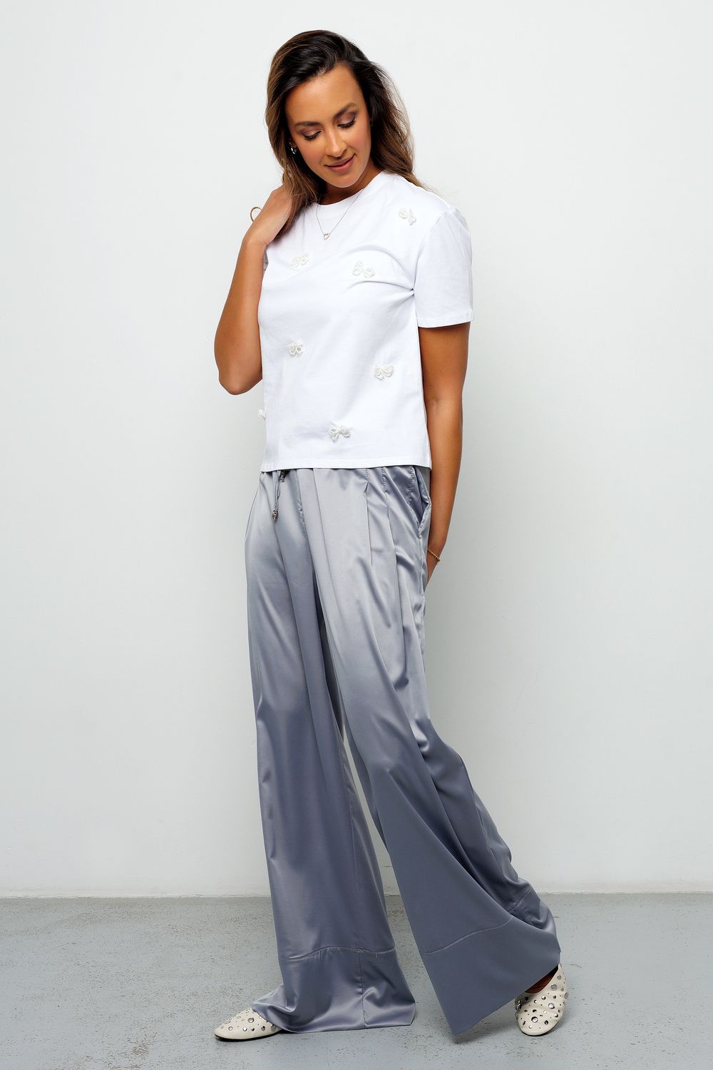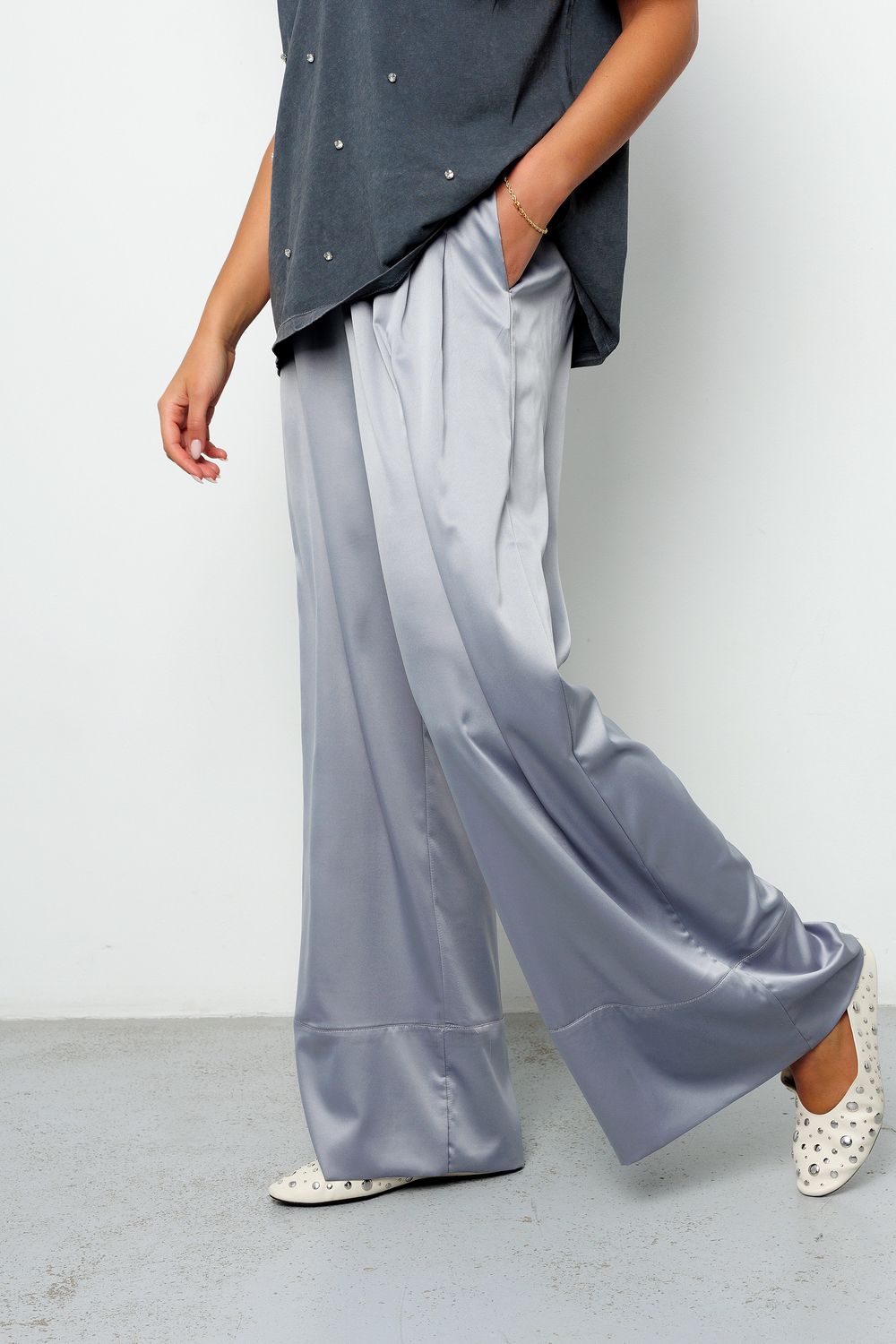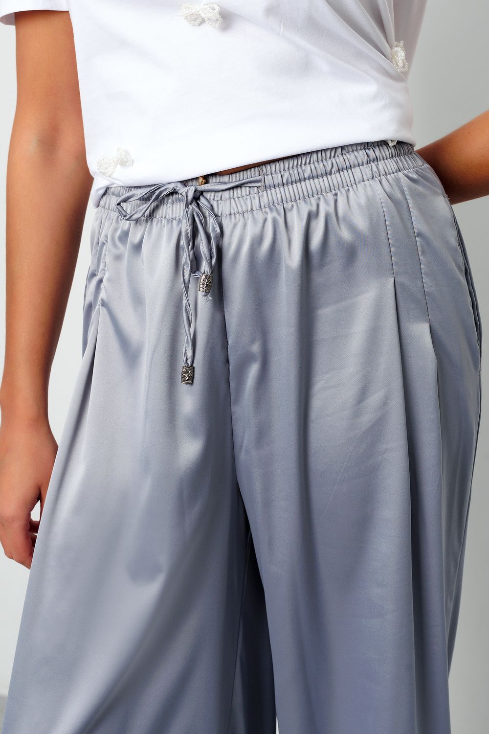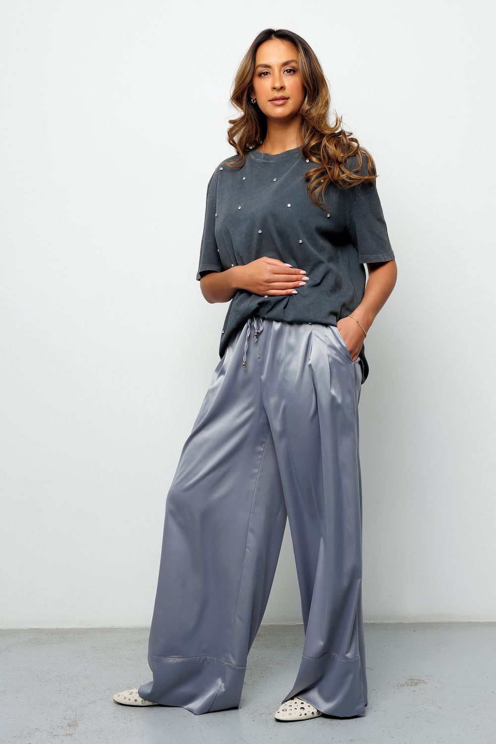 Бренд Raposa представляет Вашему вниманию классические женские брюки палаццо в стиле олд мани. Серые брюки женские больших размеров, 54-56 станут идеальным дополнением к вашему базовому гардеробу и будут прекрасно сочетаться с различным верхом и аксессуарами. Нарядные, они подойдут для любого случая, будь то офис, вечернее или праздничное мероприятие. Идеальны для высоких женщин. Атласные брюки, слаксы, имеют широкий размерный ряд до 58-60 размера для полных женщин плюс сайз и для беременных. Особенности модели: длинные, свободные, прямой клеш от бедра, красивая линия талии. Брюки струящиеся женские стильно облегают фигуру, имеют корректирующий эффект, стройнят, визуально вытягивая силуэт, и не сковывают движения, позволяя чувствовать себя комфортно на протяжении всего дня. Благодаря эластичной эргономичной резинке на талии широкие штаны, шаровары, обеспечивают максимальное удобство и идеальную посадку на любой рост. Гладкий материал атлас придаст вашему наряду юбка-брюки блестящий и праздничный вид. Брюки палаццо женские в пижамном стиле выполнены из высококачественного материала – атлас, мягкого и приятного на ощупь, который, подарит дополнительный лоск и привлечет восхищенные взгляды окружающих. Брюки офисные женские, трубы, легко комбинировать с разной одеждой для создания интересных стильных образов. Эти роскошные, универсальные и комфортные брюки подойдут на любой сезон и будут уместны на любое торжество или вечеринки 2025: День рождения, корпоратив, для женщин и девушек подростков, предлагая великолепную посадку благодаря удобному покрою. Повседневные или деловые образы с этими брюками металлик премиум качества будут всегда актуальны благодаря современному y2k тренду. Классные штанишки подходят для школьных выходов для девочки, для выпускных балов или для танцев. Наряд будет интересно смотреться в тематической фотосессии или как весенние и летние брюки. Эти брючки - настоящий подарок для ценителей красоты, женственности и элегантности.