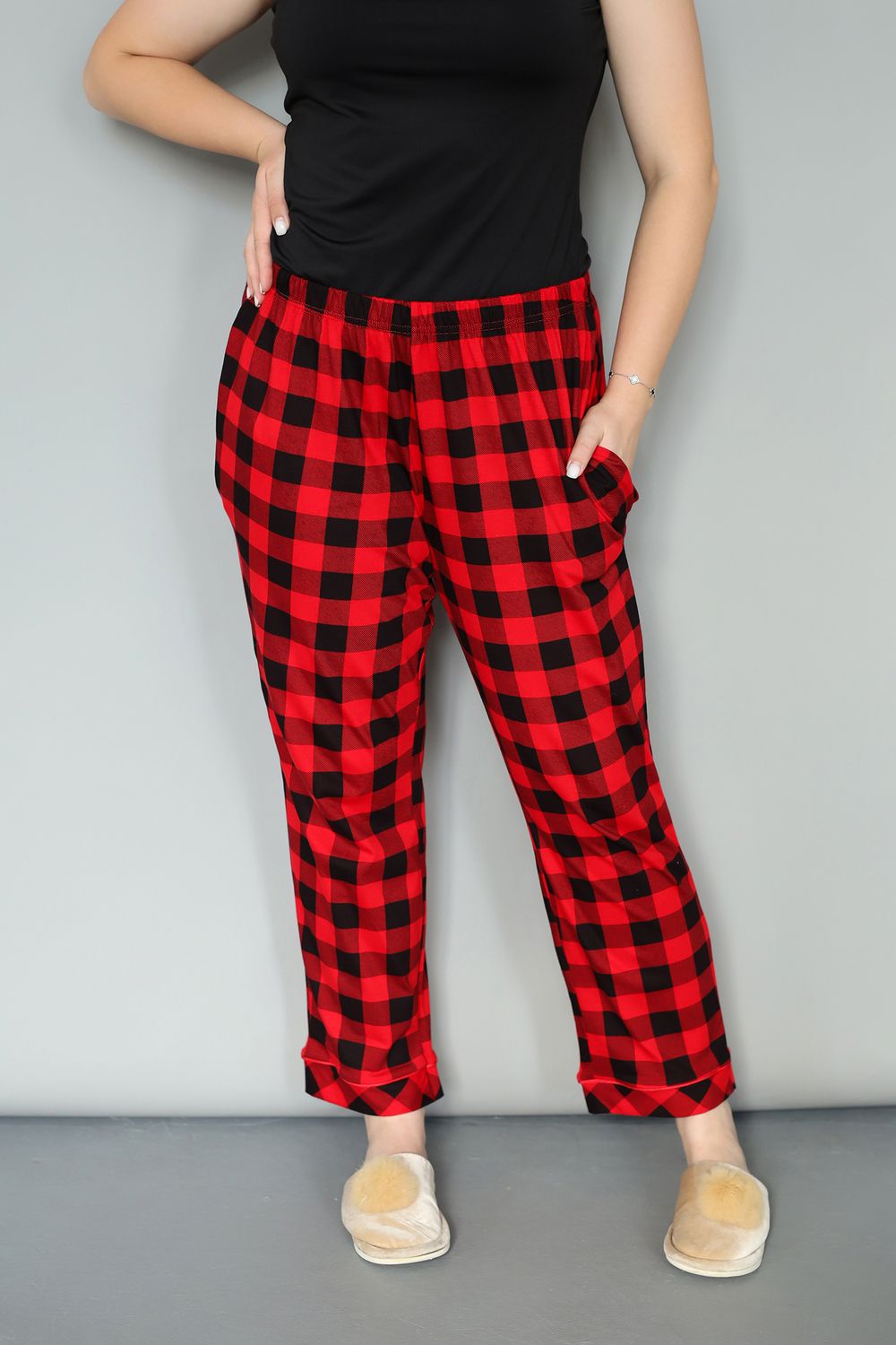 Брюки пижамные женские Вразмере из коллекции "Новогодние" - это идеальный выбор для комфортного сна и отдыха дома. Сшитые из 100% хлопка, они невероятно мягкие и приятные к телу, обеспечивая максимальный комфорт в течение всего дня. Широкий крой штанов создает ощущение свободы движений, а эластичная резинка на поясе гарантирует удобную посадку на любой фигуре. Классический красный цвет с клетчатым рисунком придает брюкам праздничный вид, делая их подходящими не только для сна, но и для уютных домашних вечеров. Благодаря своей универсальности, эти брюки станут незаменимой частью вашего гардероба для дома. Модель подходит как для высоких, так и для невысоких женщин, а гладкая фактура трикотажа не вызывает раздражения на коже. Уход за брюками максимально прост: стирка при температуре не более 40°C. Брюки Вразмере - это сочетание комфорта, стиля и практичности, которое оценят все ценительницы домашнего уюта.