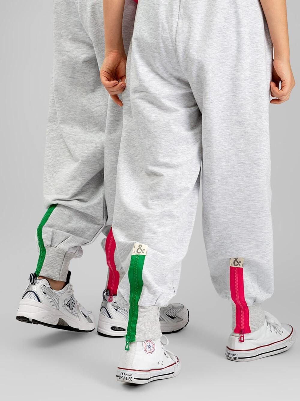 Стильные свободного кроя трикотажные брюки для девочки. Сзади две декоративные молнии. Широкая размерная линейка, подходит и для взрослых.