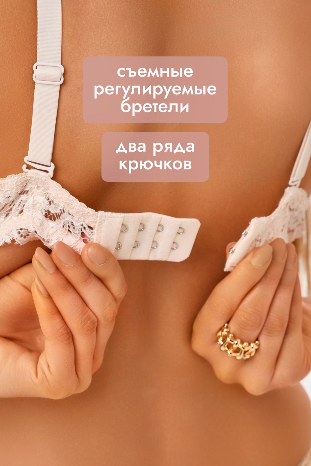 Дизайн изделия включает в себя ажурные узоры и изысканные детали, что придает ему очарование и привлекательность. Кружевные вставки на чашках и краях бюстгальтера создают эффект легкой прозрачности, который делает женский образ более соблазнительным. Данный лифчик оснащен мягкими, формованными чашками, которые обеспечивают оптимальную поддержку и форму груди. Регулируемые бретели позволяют настроить подходящую длину и обеспечить идеальную посадку.