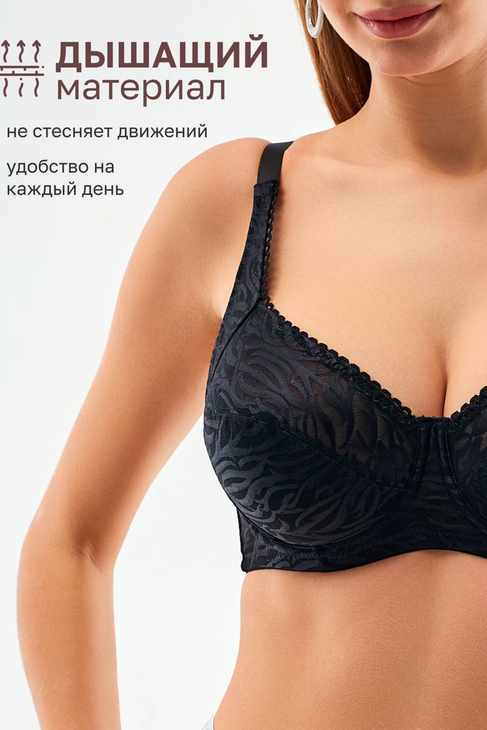 Модель подходит для женщин с большими размерами. Женский бюстгальтер без пушап обеспечивает естественную поддержку, сохраняя форму груди. Он отлично облегает фигуру и дарит уверенность в любой ситуации.
