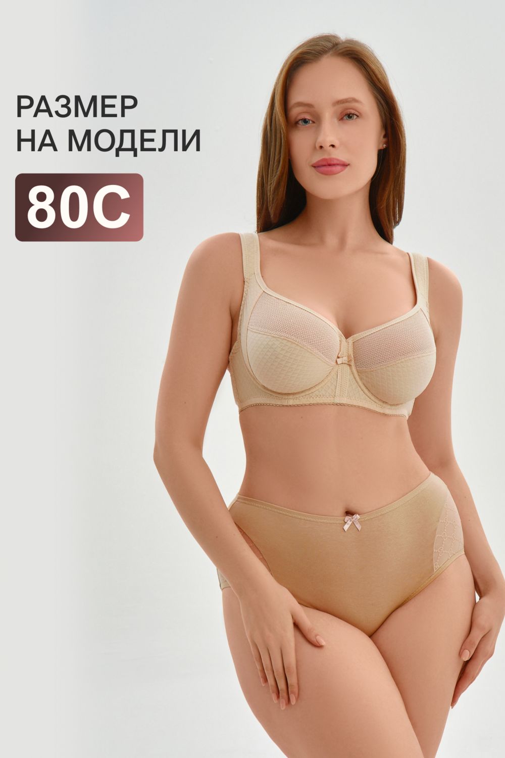 Без пушапа модель выглядит естественно и привлекательно, акцентируя внимание на красоте натуральных линий.