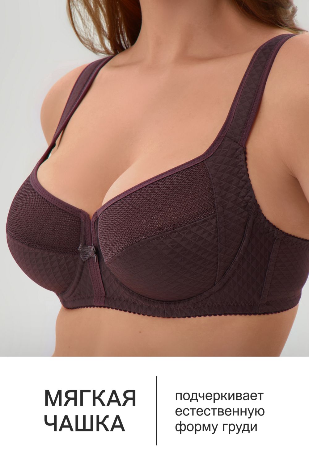 Элегантный и удобный женский бюстгальтер станет отличным выбором для тех, кто ценит комфорт и изысканный стиль. Кружевное белье без поролона обеспечивает естественную поддержку, позволяя коже дышать и создавая ощущение легкости на протяжении всего дня. Благодаря наличию косточек, лифчик прекрасно поддерживает грудь, делая его подходящим для обладательниц большой груди. Широкие лямки добавляют дополнительного комфорта и надежности, не вызывая дискомфорта при длительном ношении.