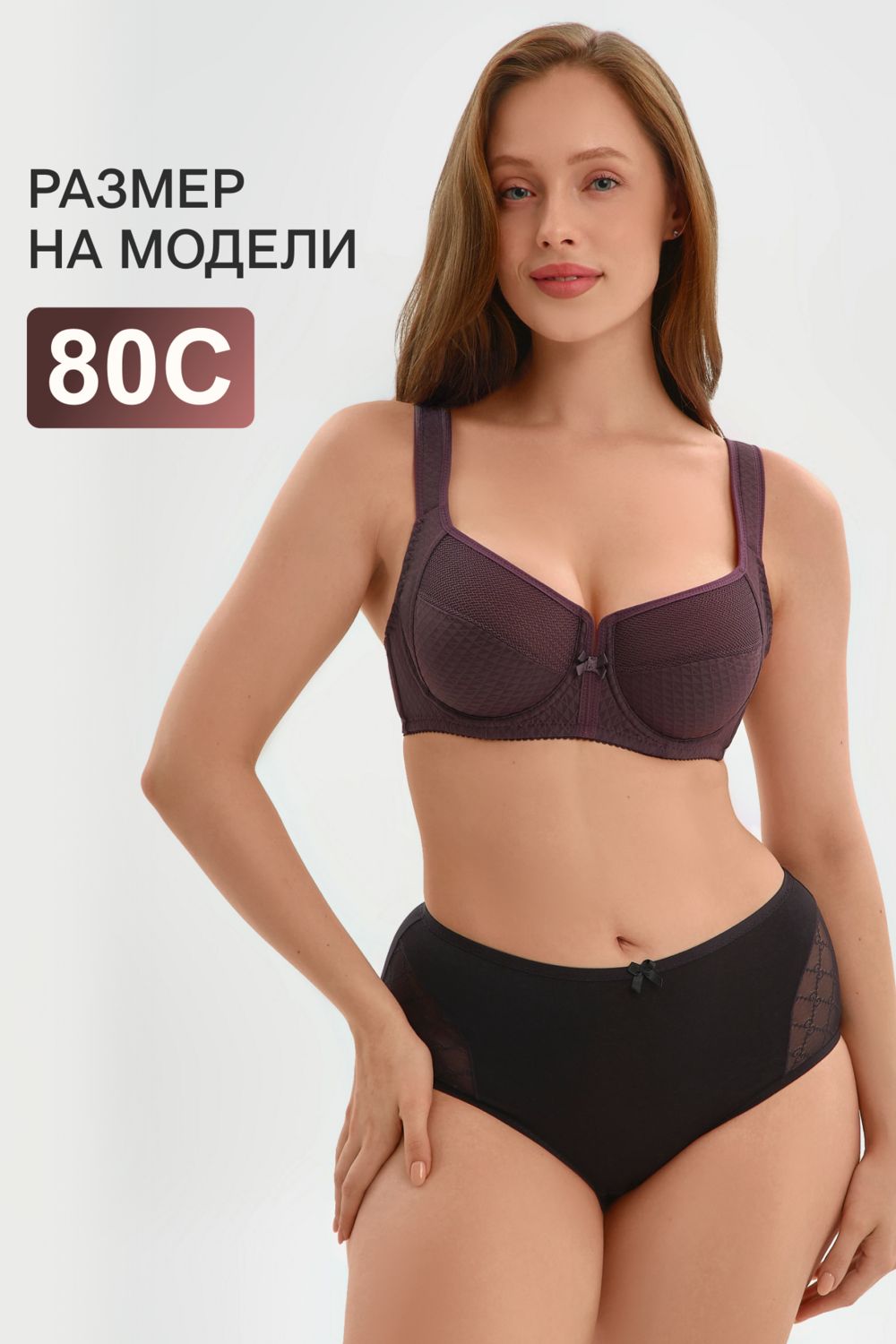 Без пушапа модель выглядит естественно и привлекательно, акцентируя внимание на красоте натуральных линий.