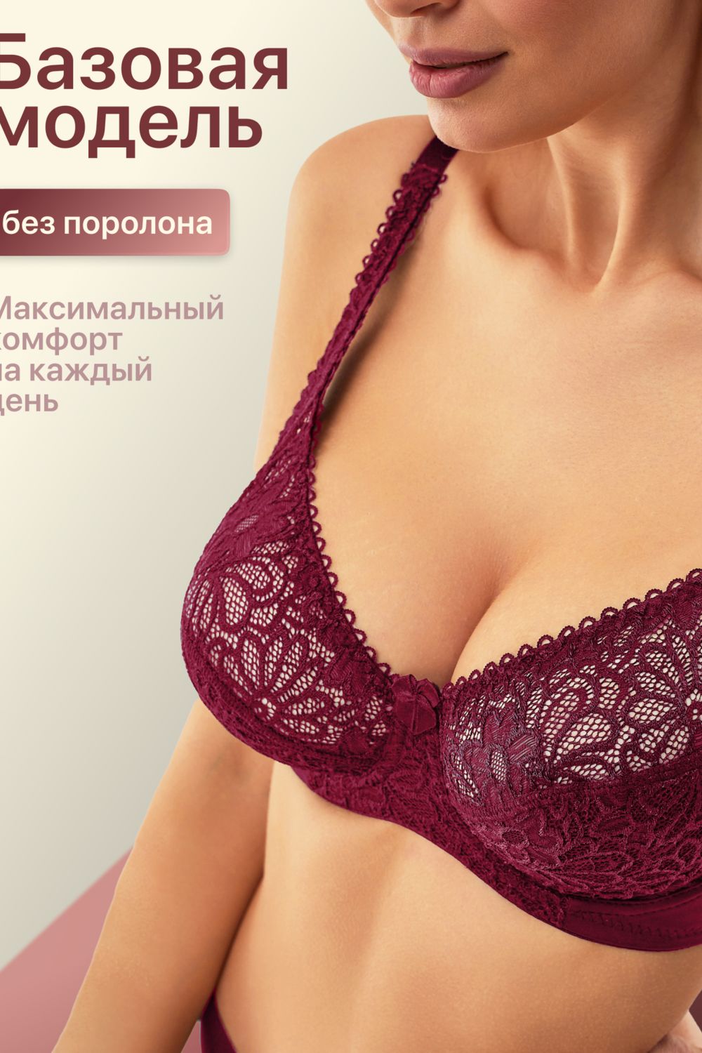 Бюстгальтер 71211 OIRO кружевной мягкая чаша 1 шт - бордовый
