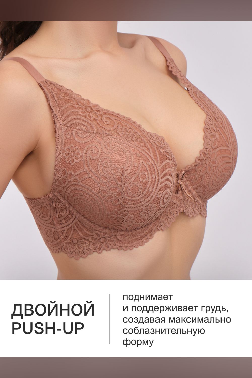 Бюстгальтер кружевной OIRO с пуш-ап ALICE 1032 - кофе