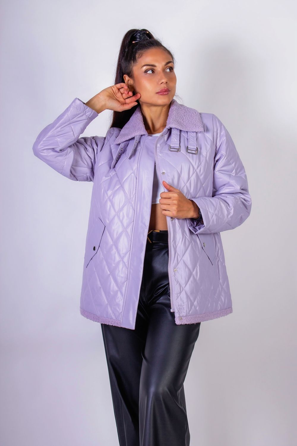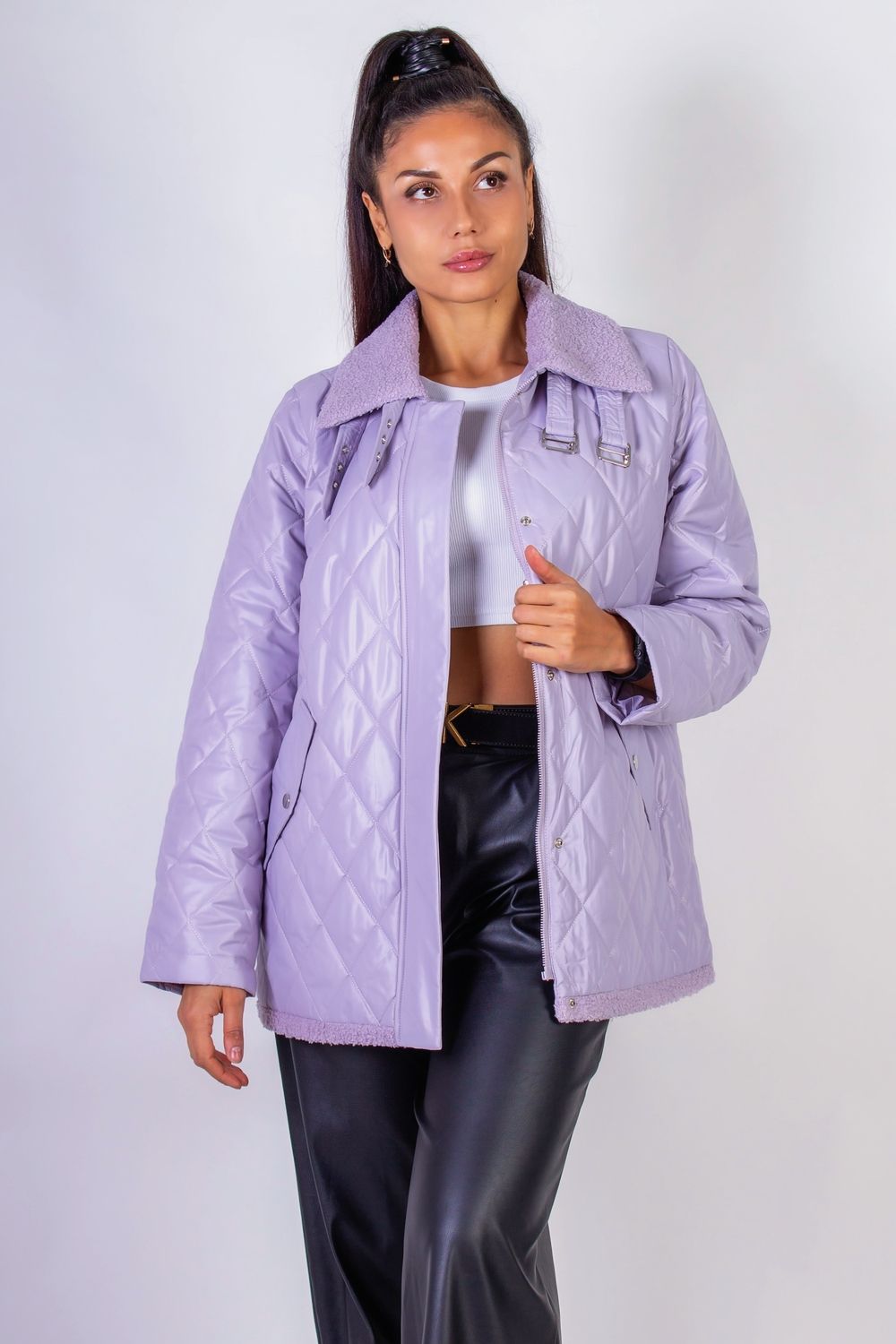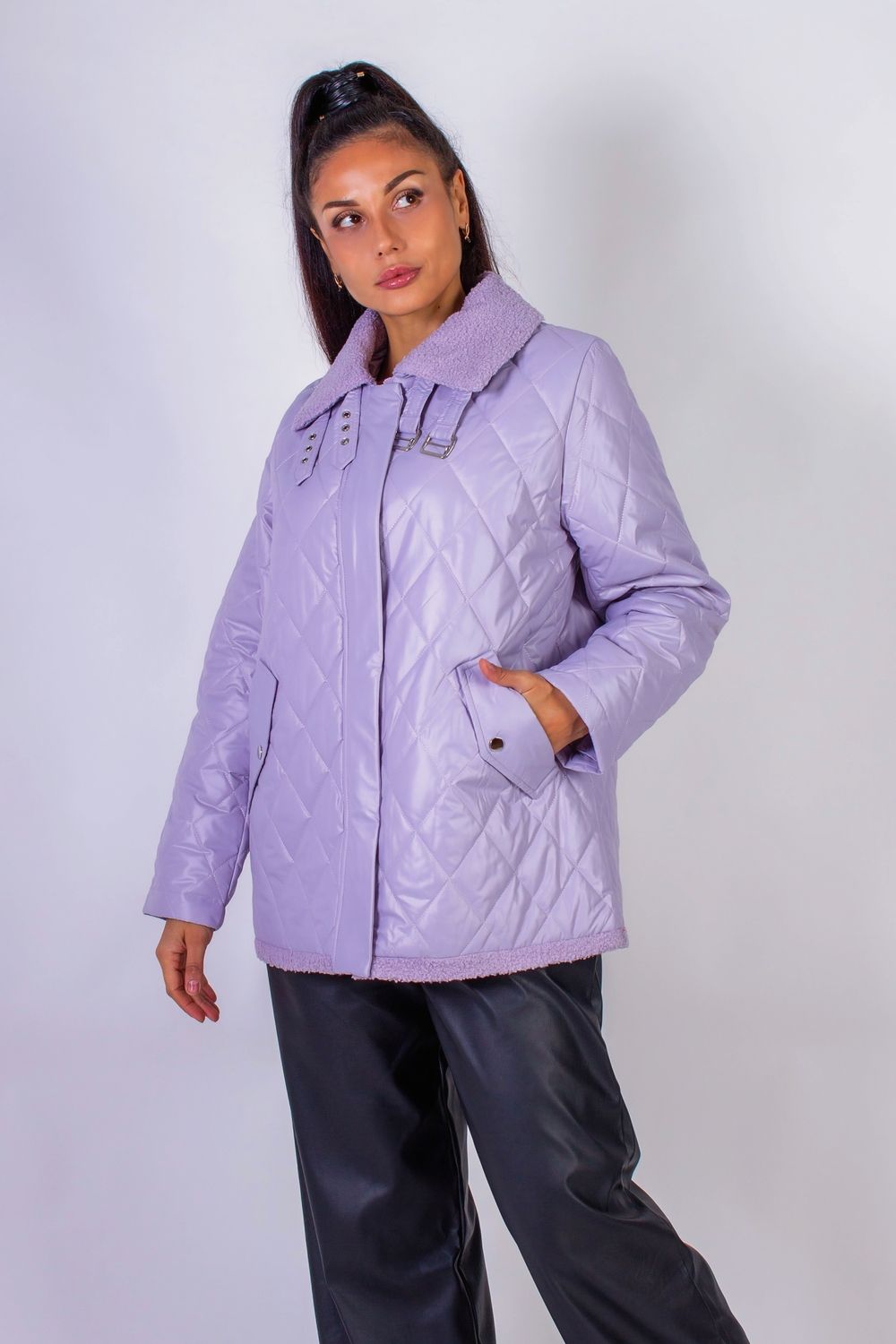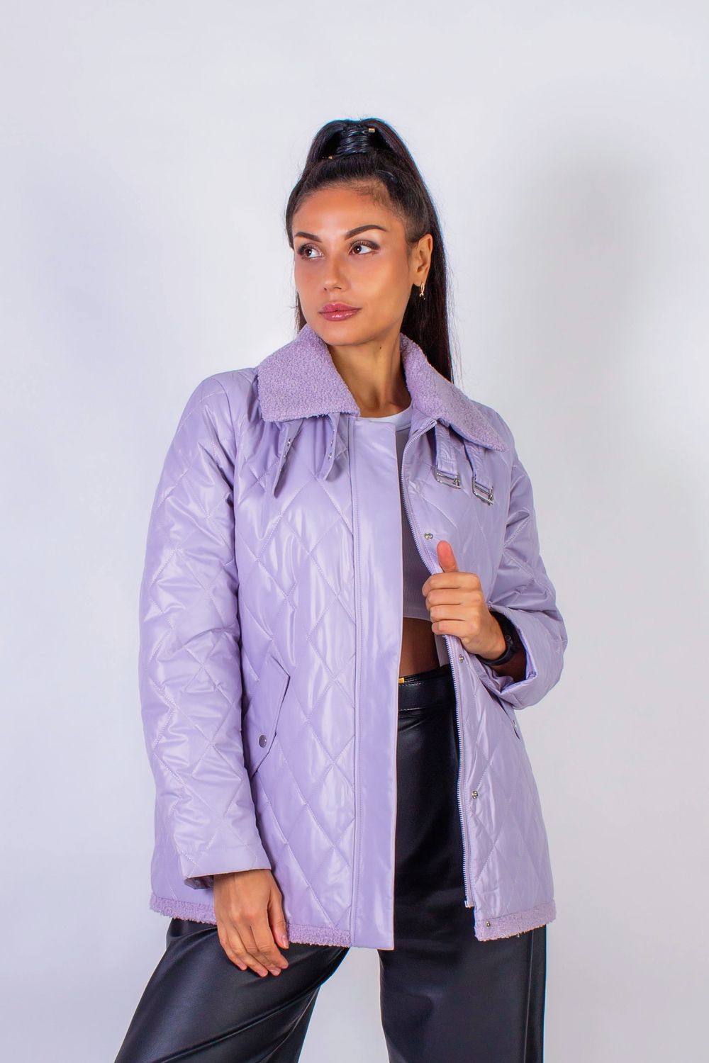 Демисезонная женская куртка Авиатор арт.7035 - сиреневый