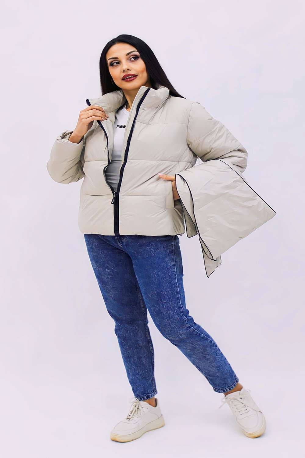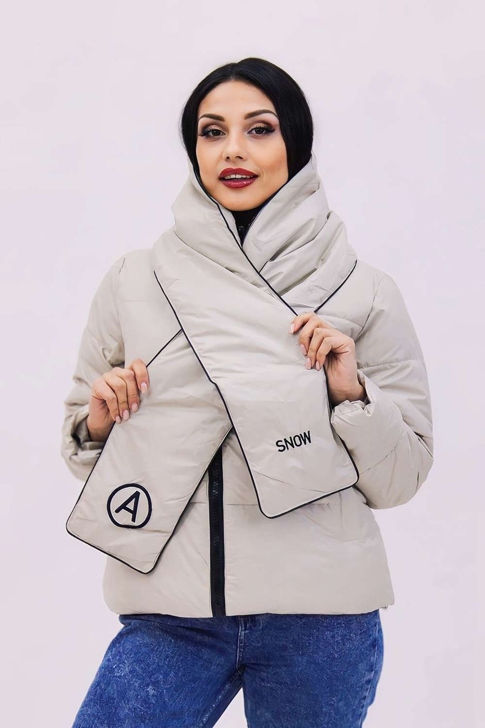 Демисезонная женская куртка весна осень +дутый шарф-косынка 8193 - бежевый