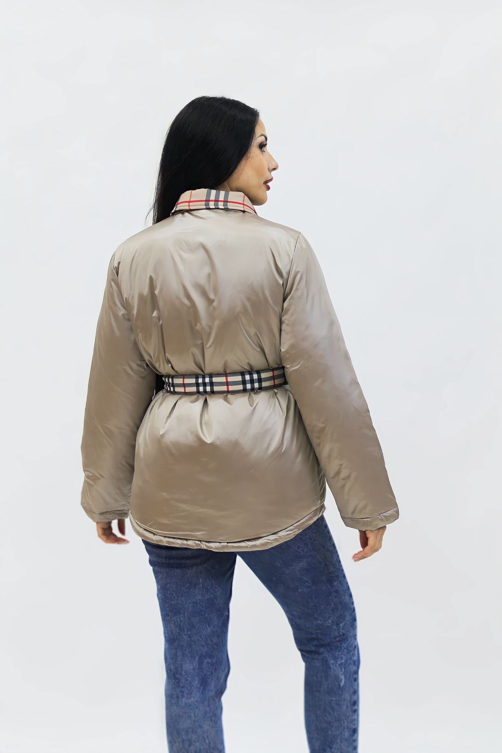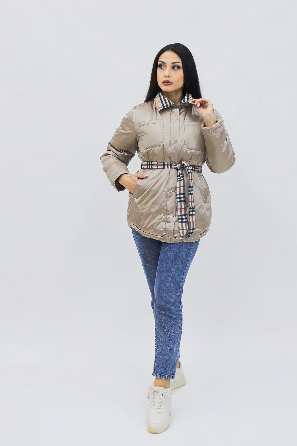 Демисезонная женская куртка весна осень Клетка 8762 - бежевый