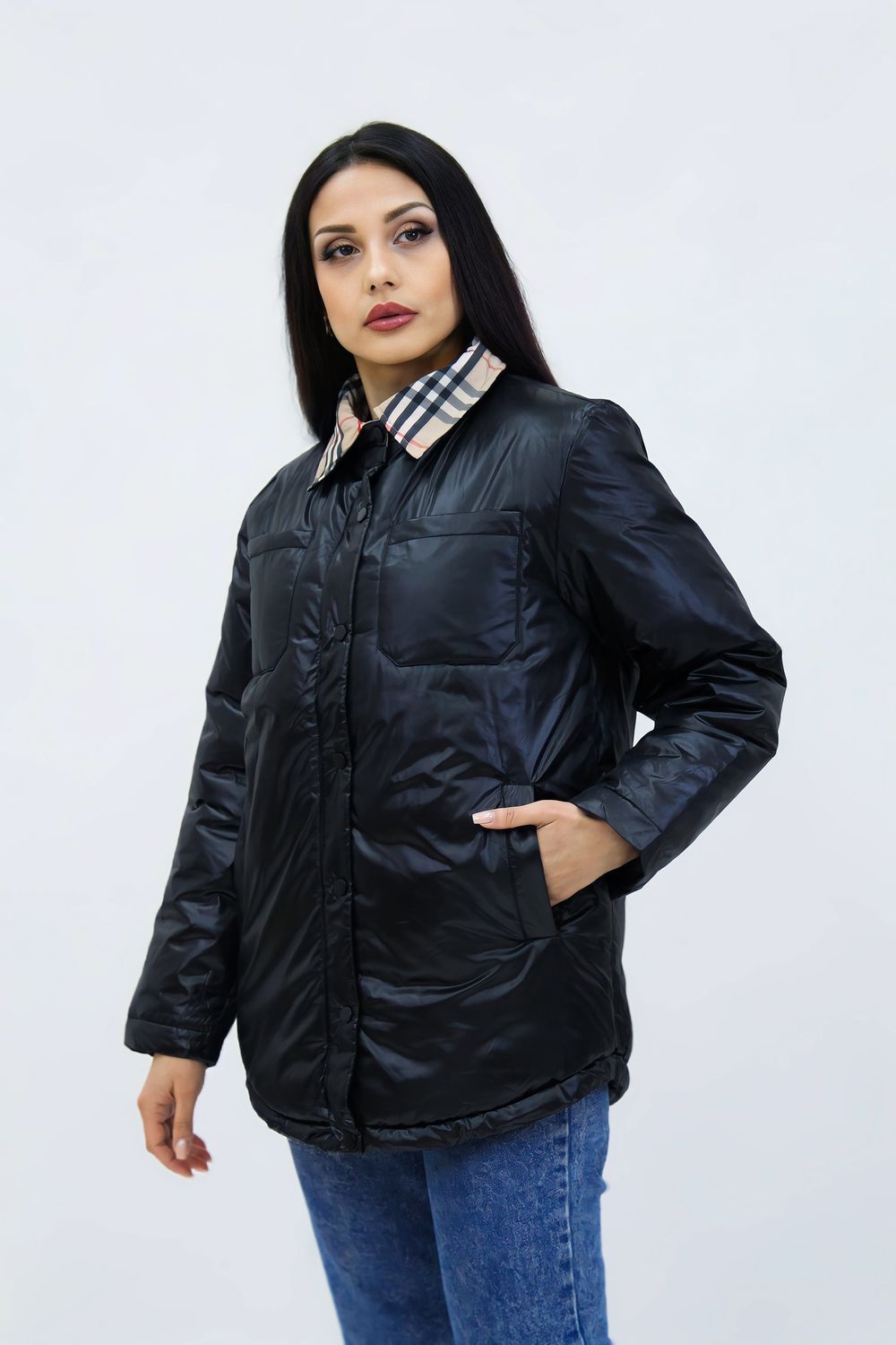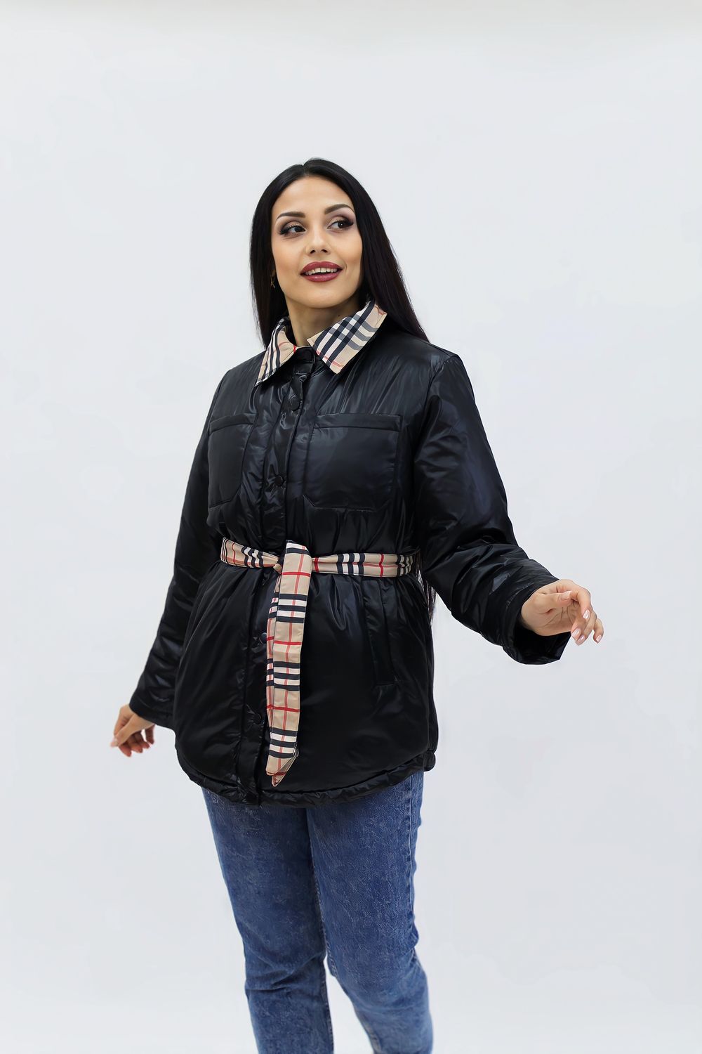 Демисезонная женская куртка весна осень Клетка 8762 - черный