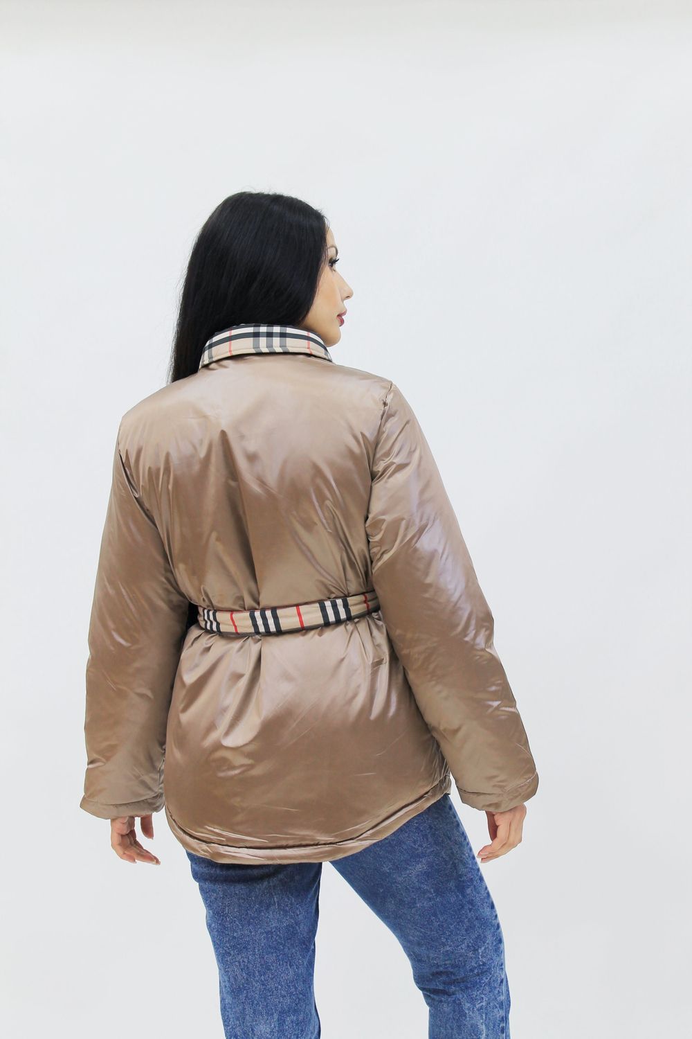 Демисезонная женская куртка весна осень Клетка 8762 - коричневый