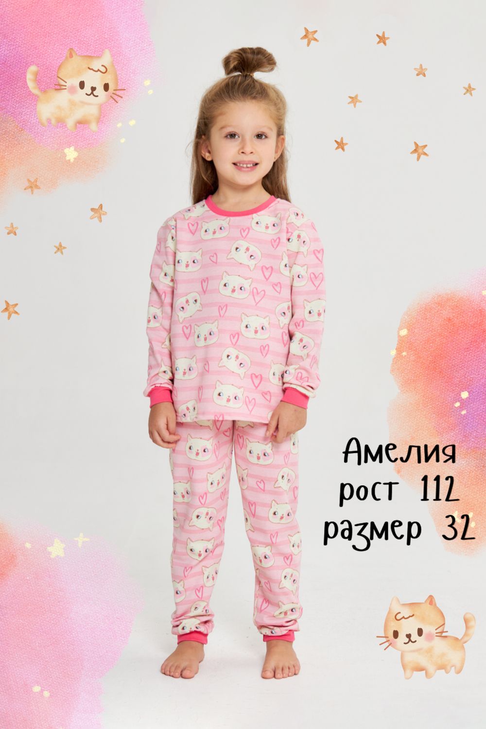 Детская пижама для девочек из 100% хлопка в розовых тонах с изображением тематических рисунков.