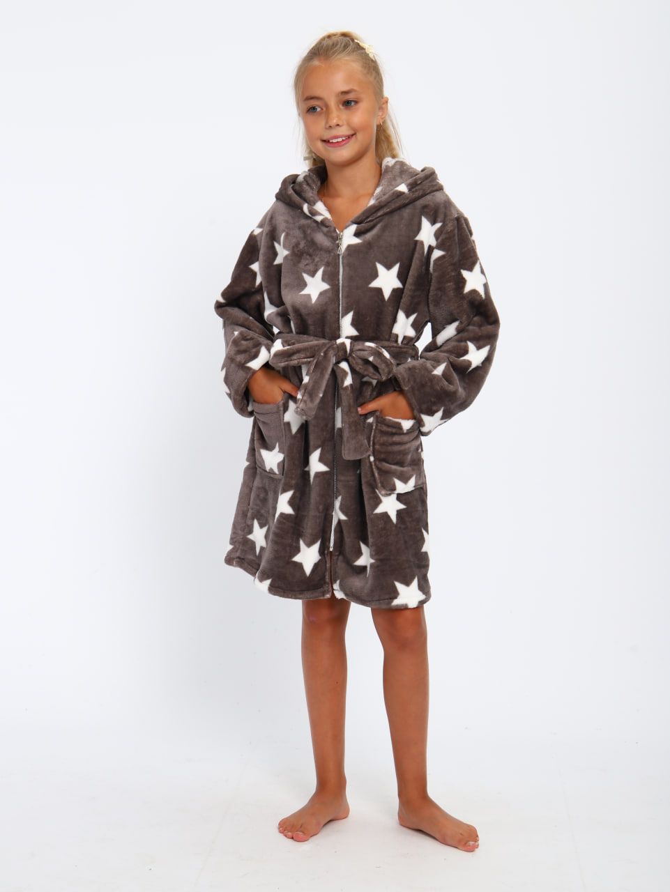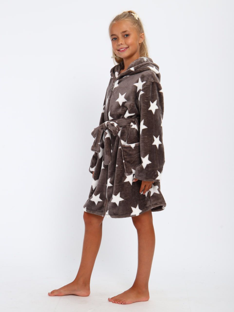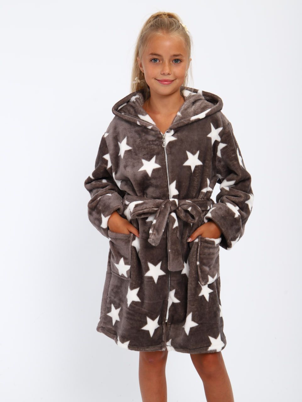 Мягкий детский халат из ткани экстрасофт подарит тепло и уют вашему малышу. Лёгкий, нежный и очень приятный на ощупь материал прекрасно сохраняет тепло и быстро сохнет, поэтому халатик удобно надевать после купания или просто дома для комфорта. Свободный крой не сковывает движений, капюшон защищает от прохлады, а пояс позволяет регулировать посадку. Яркие забавные принты делают модель ещё более привлекательной для детей и превращают её в любимую домашнюю одежду.