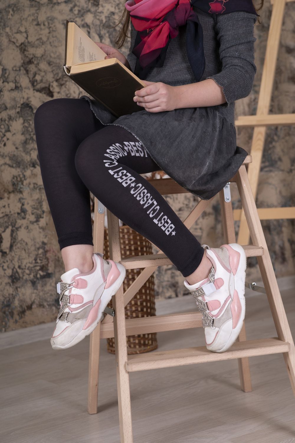 Модные детские леггинсы с лампасами в виде надписей, по низу резинка