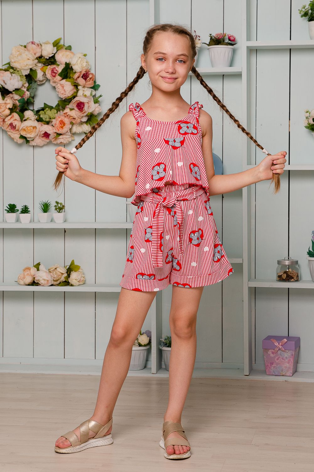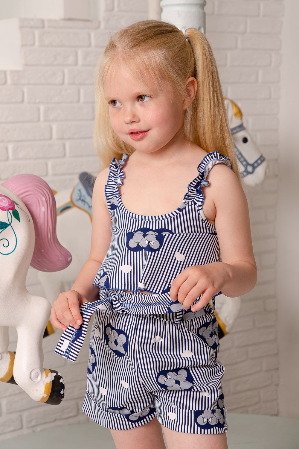 Костюм для девочки выполнен из экологичной хлопковой ткани-кулирное полотно. Набор из 2 комплектов. Футболка прямого кроя. Вырез горловины округлый, рукав втачной, короткий. Шорты короткие, без карманов, пояс на резинке. Ткань легкая, приятная к телу, хорошо пропускает воздух. Натуральный хлопок обеспечит комфорт ребенку во время летних прогулок или носки дома, в детском саду.