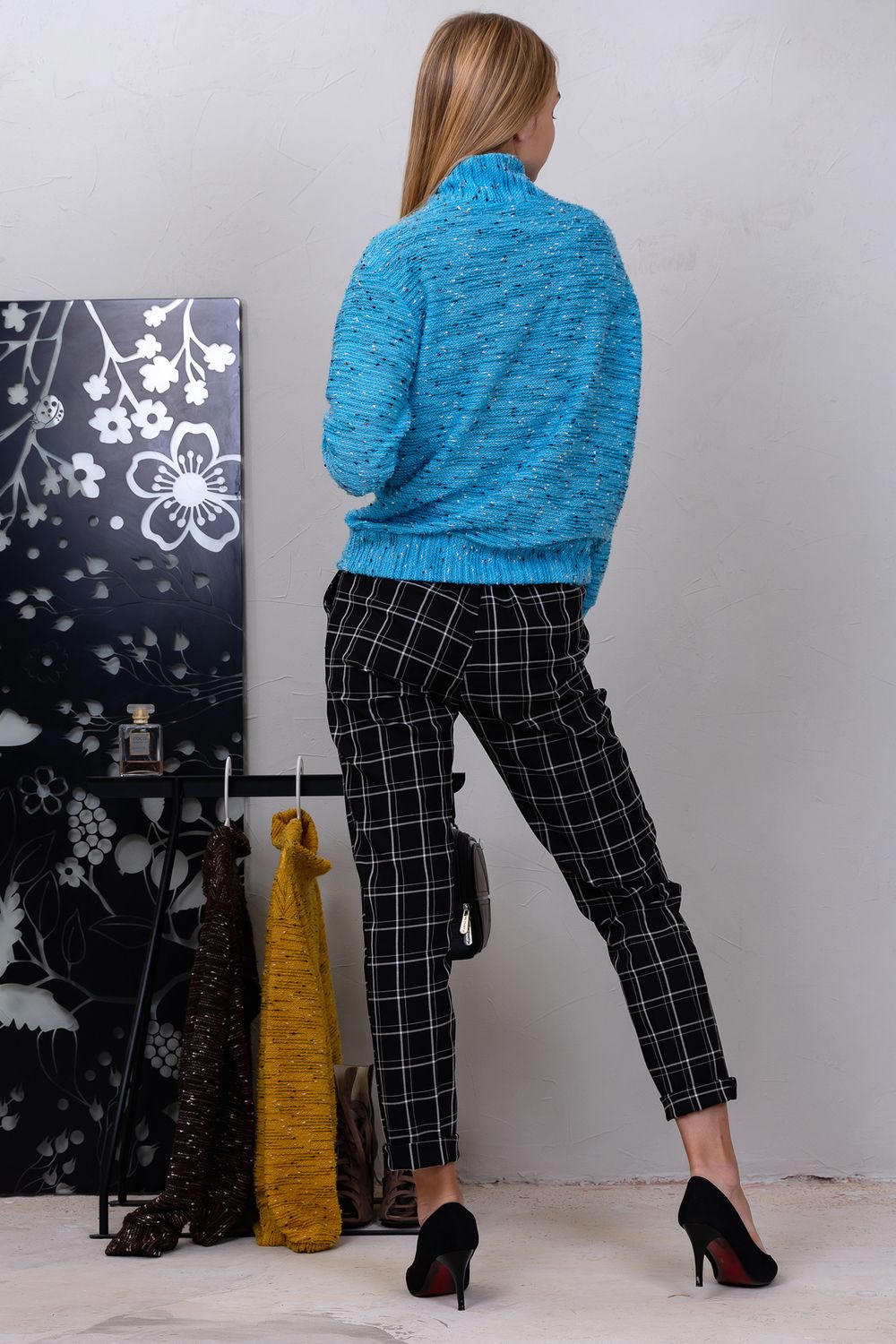 Джемпер из мягкого трикотажа БУКЛЕ с цветными вкраплениями. Ворот оформлен в виде шальки, спущенная пройма, длинный рукав. В плечевом шве имеется силиконовый усилитель. Джемпер свободного покроя, низ и рукава обработаны широким манжетом. Трикотаж БУКЛЕ приятный к телу, не колется.