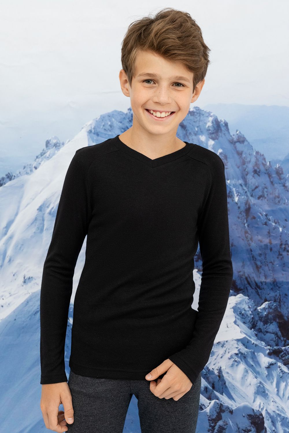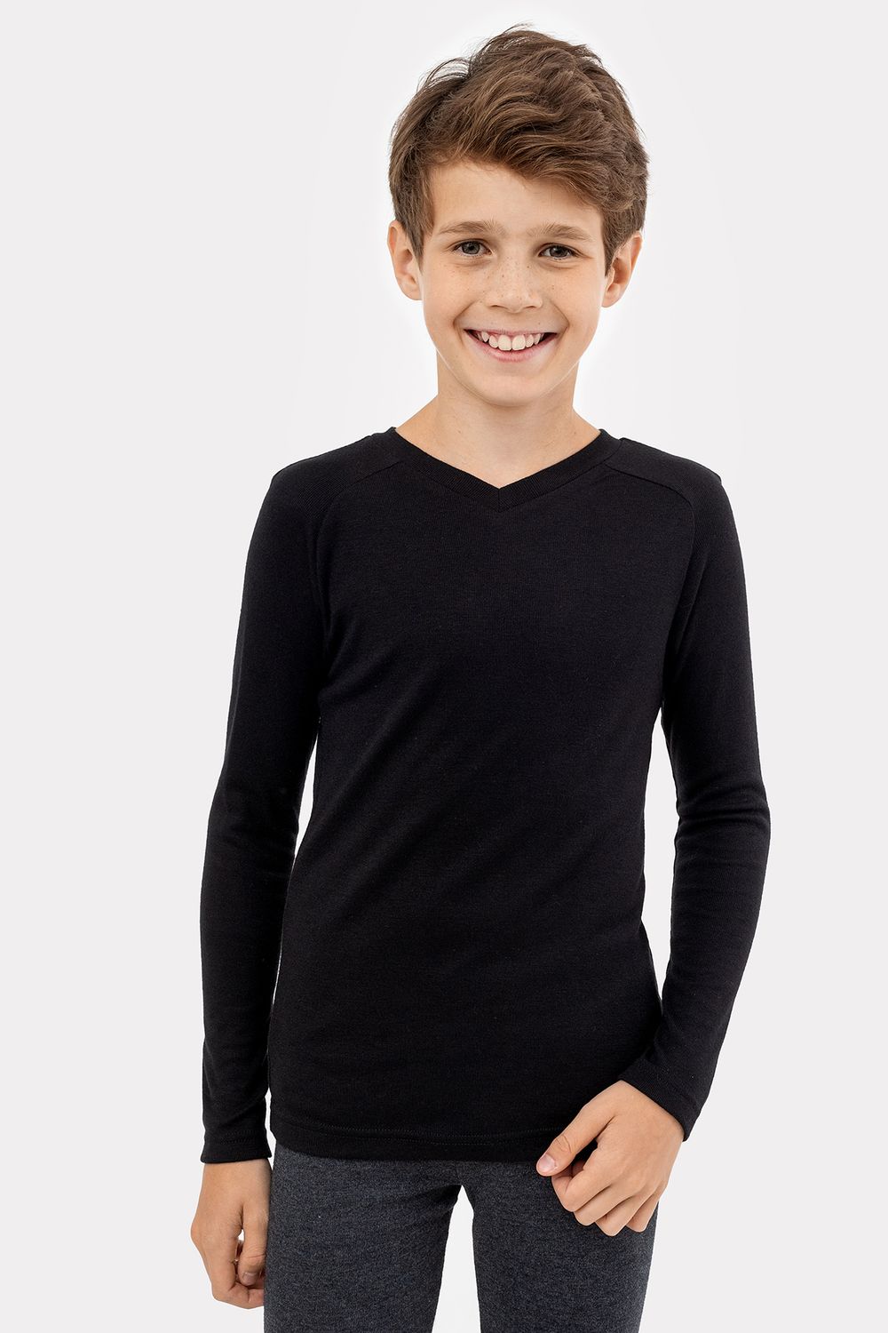 Классический прилегающий джемпер для мальчиков. Умный материал фактуры "термо" удерживает тепло и отводит избыточную влагу. Особый способ вязания полотна, предуcматривающий воздушные ячейки, соединяющие основу полотна с верхним слоем, придаёт изделию особые гигиенические и термические свойства. Австрийская технология производства ткани позволяет выдерживать экстремальные температуры до -20 градусов Цельсия. Изделия из такой ткани могут использоваться ежедневно для занятий спортом и активного отдыха.
