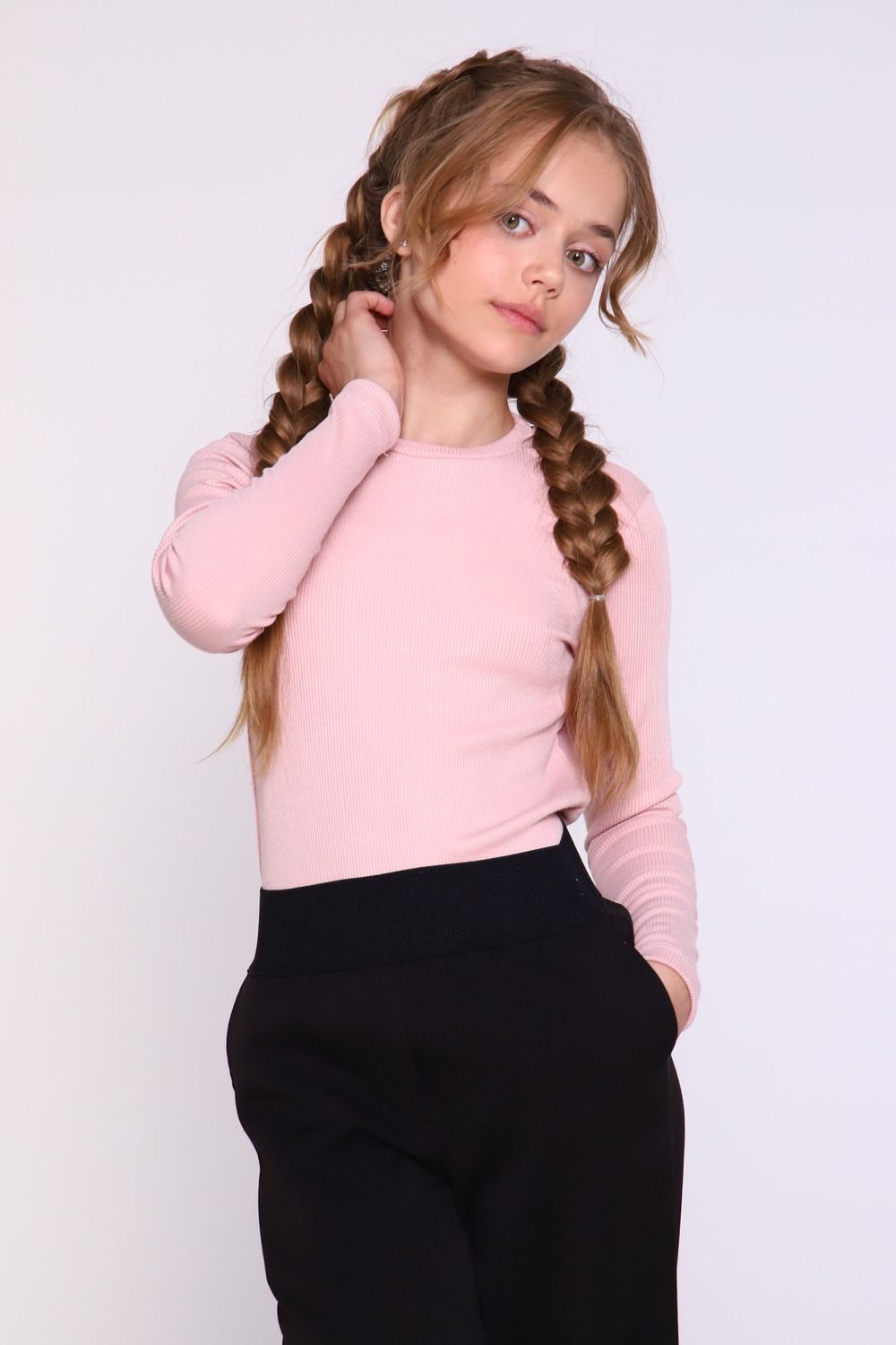 Джемпер для девочки нежной расцветки из полотна в рубчик "лапша" - отличный вариант как для школьных будней, так и для внешкольных мероприятий. Мягкое трикотажное изделие не только невероятно комфортно в носке, но еще и не деформируется при стирке. Водолазка нежных цветов гармонично будут сочетаться с любыми предметами гардероба вашей принцессы.