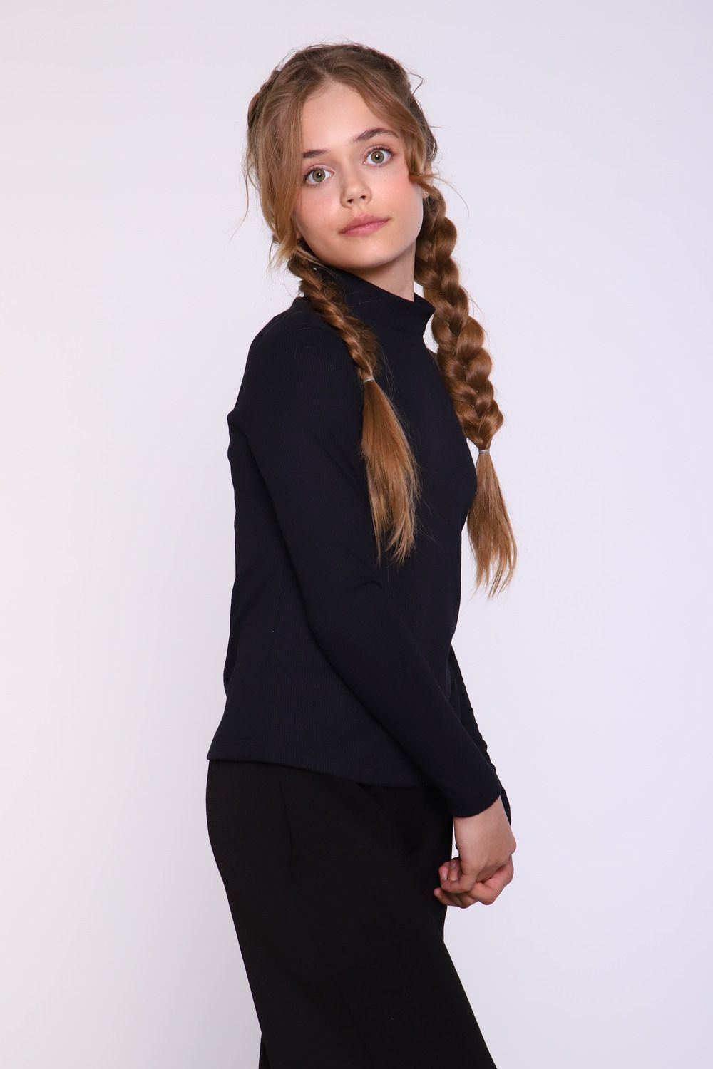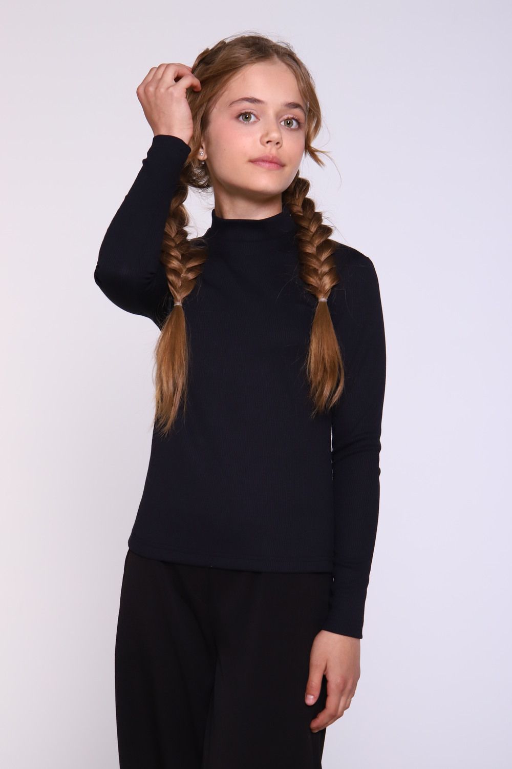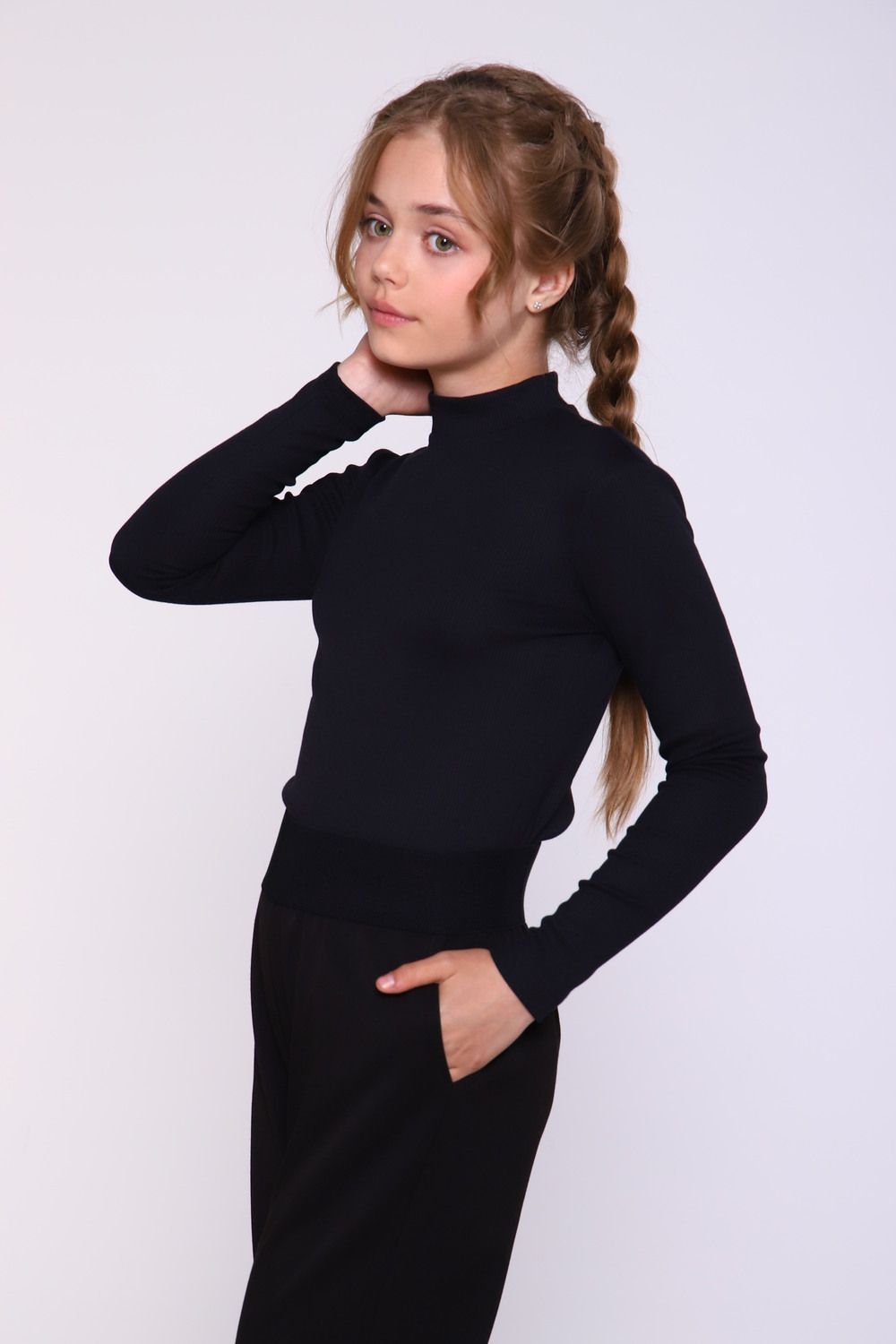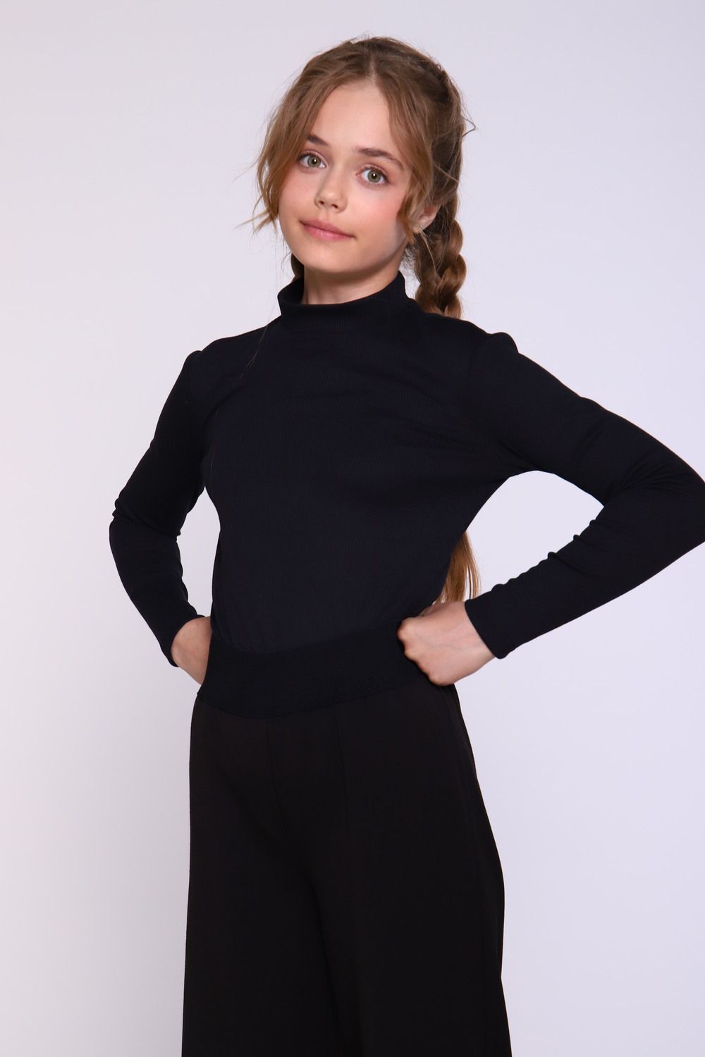 Джемпер для девочки нежной расцветки из полотна в рубчик "лапша" - отличный вариант как для школьных будней, так и для внешкольных мероприятий. Мягкое трикотажное изделие не только невероятно комфортно в носке, но еще и не деформируется при стирке. Водолазка нежных цветов гармонично будут сочетаться с любыми предметами гардероба вашей принцессы.