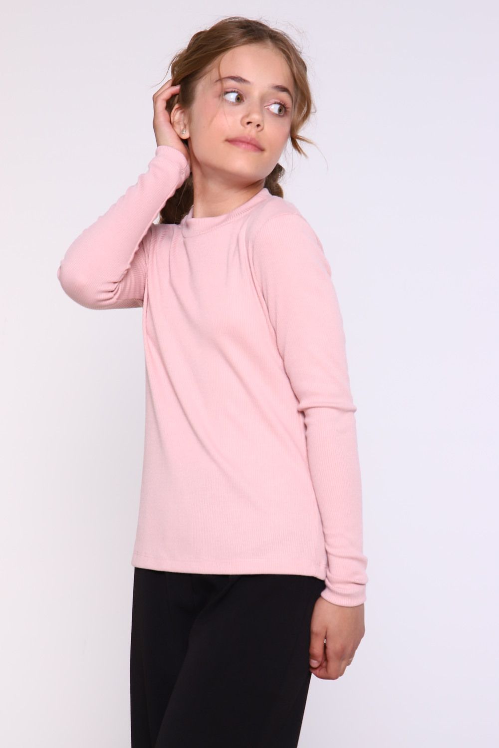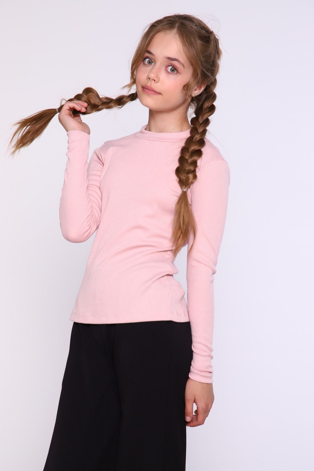 Джемпер для девочки нежной расцветки из полотна в рубчик "лапша" - отличный вариант как для школьных будней, так и для внешкольных мероприятий. Мягкое трикотажное изделие не только невероятно комфортно в носке, но еще и не деформируется при стирке. Водолазка нежных цветов гармонично будут сочетаться с любыми предметами гардероба вашей принцессы.