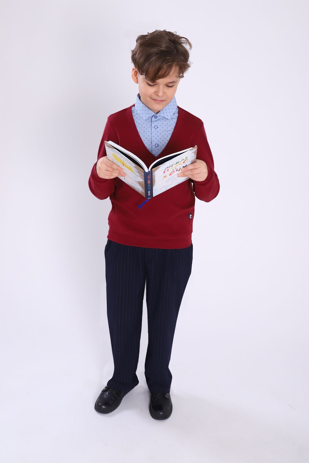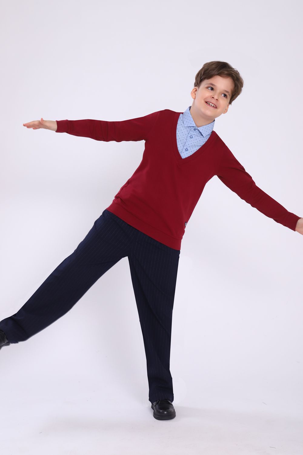 Джемпер-обманка для мальчика "Чарли" арт. 13273 - бордовый/синие точки