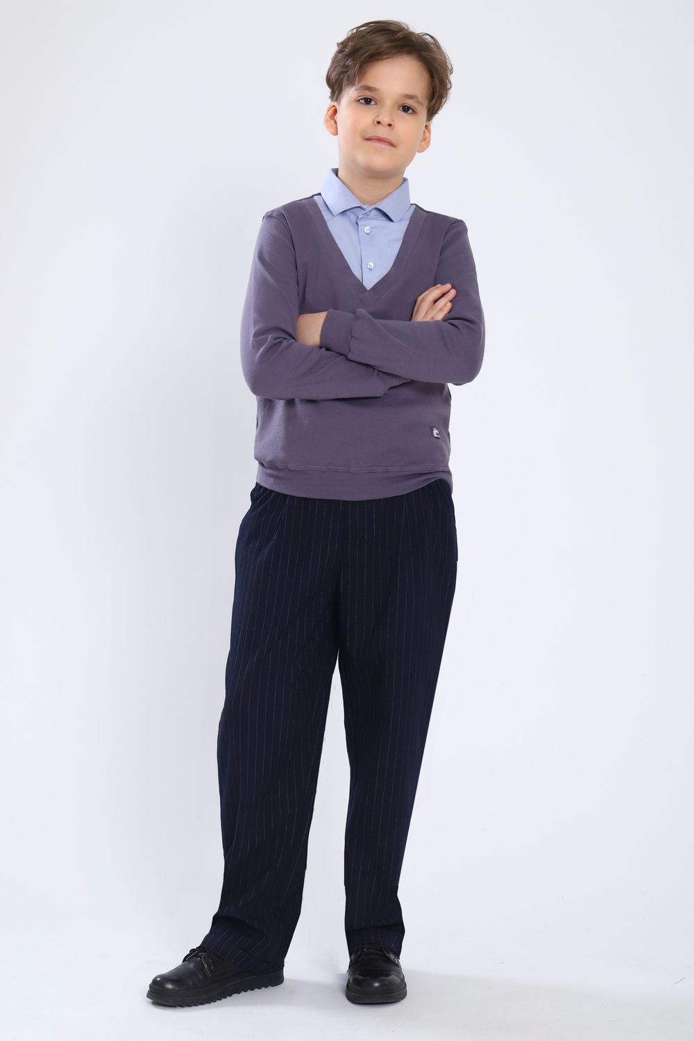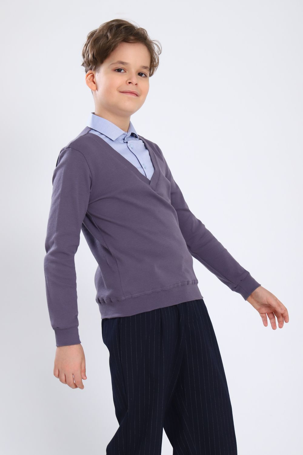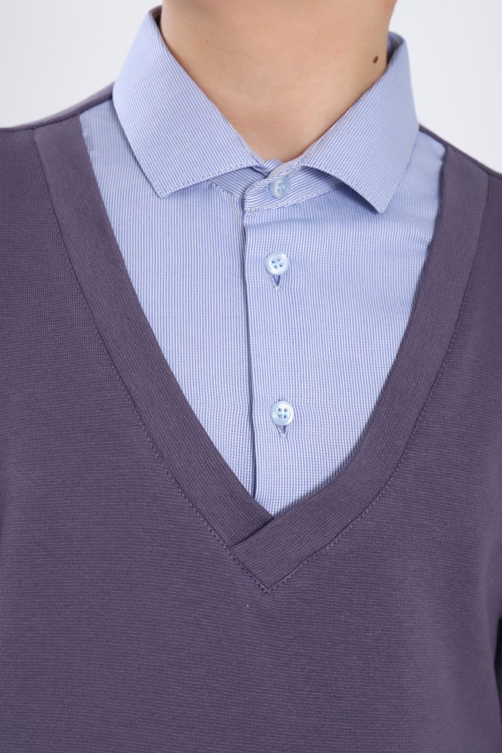 Джемпер-обманка для мальчика "Чарли" арт. 13273 - серый/голубой-фактурный