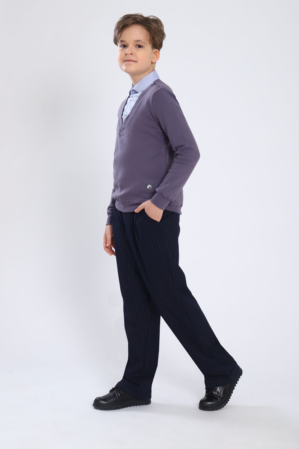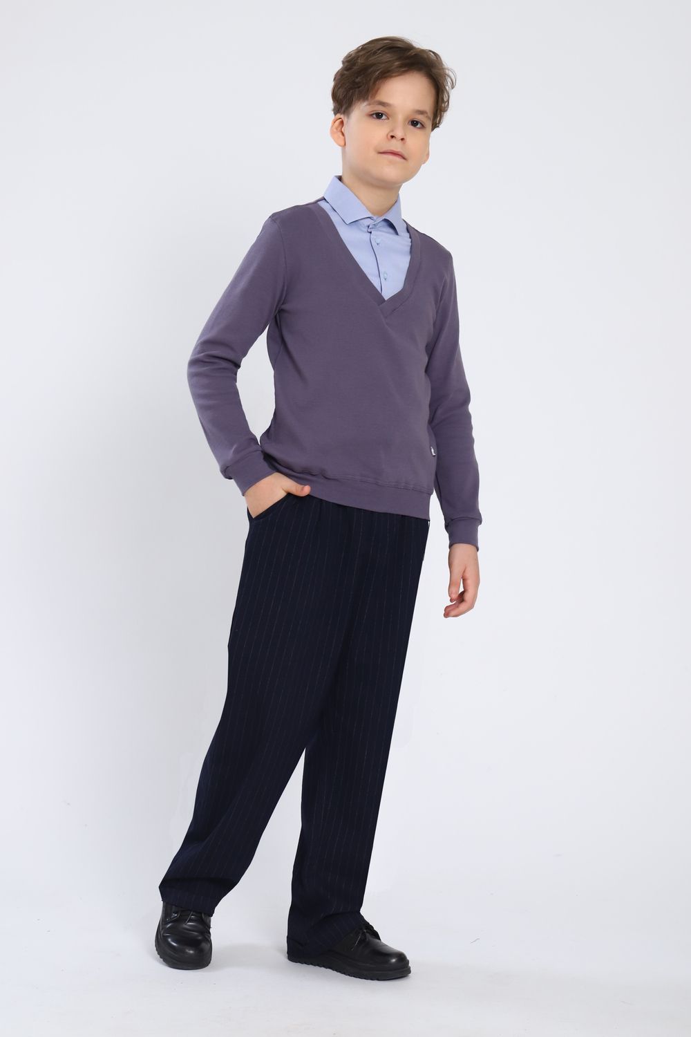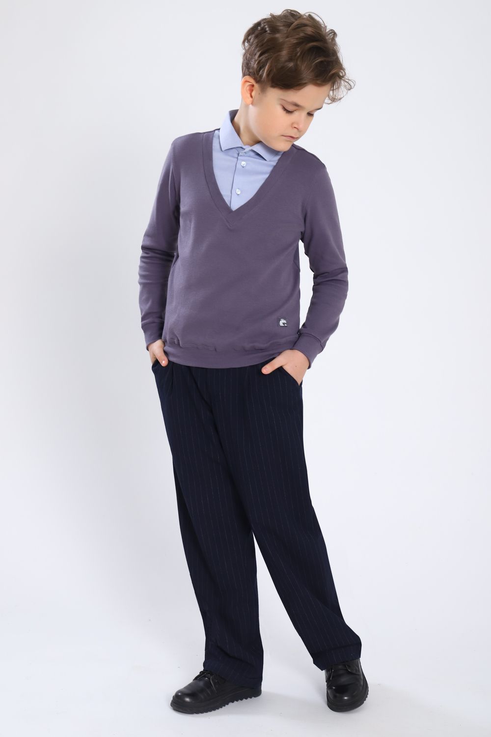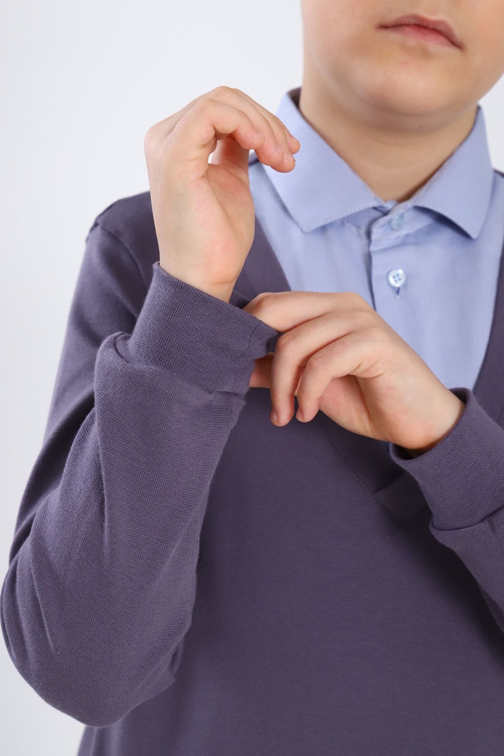 Джемпер-обманка для мальчика "Чарли" арт. 13273 - серый/голубой-фактурный