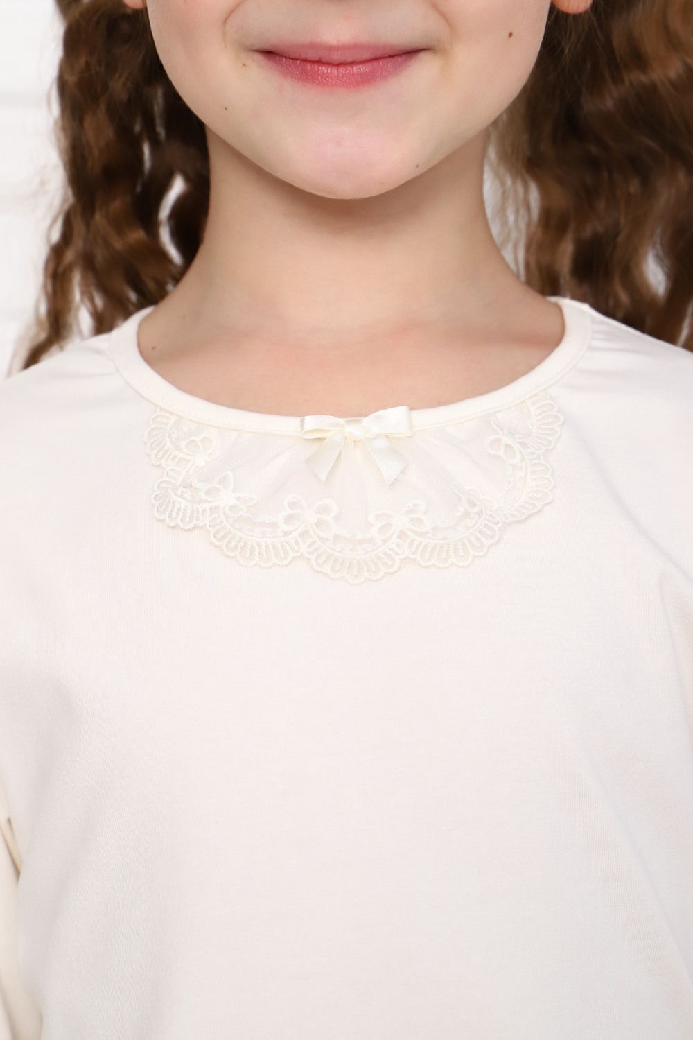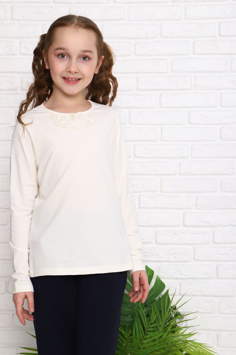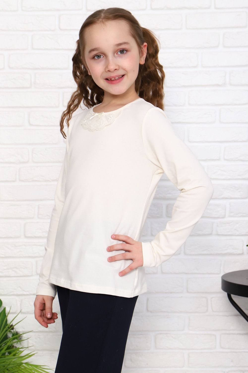 Базовая школьная блузка для девочек с длинным рукавом. Блузка прилегающего силуэта, с втачным рукавом. По центру переда настрочено жабо из кружева и прикреплен декоративный элемент. Нарядная блузка станет основой повседневного и праздничного образа. Модель составит одинаково удачный комплект и с юбкой, и с брюками. Блузка сшит из качественного трикотажа, используемый материал не теряет форму после многократных стирок, мягкий и приятный к телу, устойчив к износу. Для сохранения первоначальных свойств изделия, важно соблюдать рекомендации по уходу.