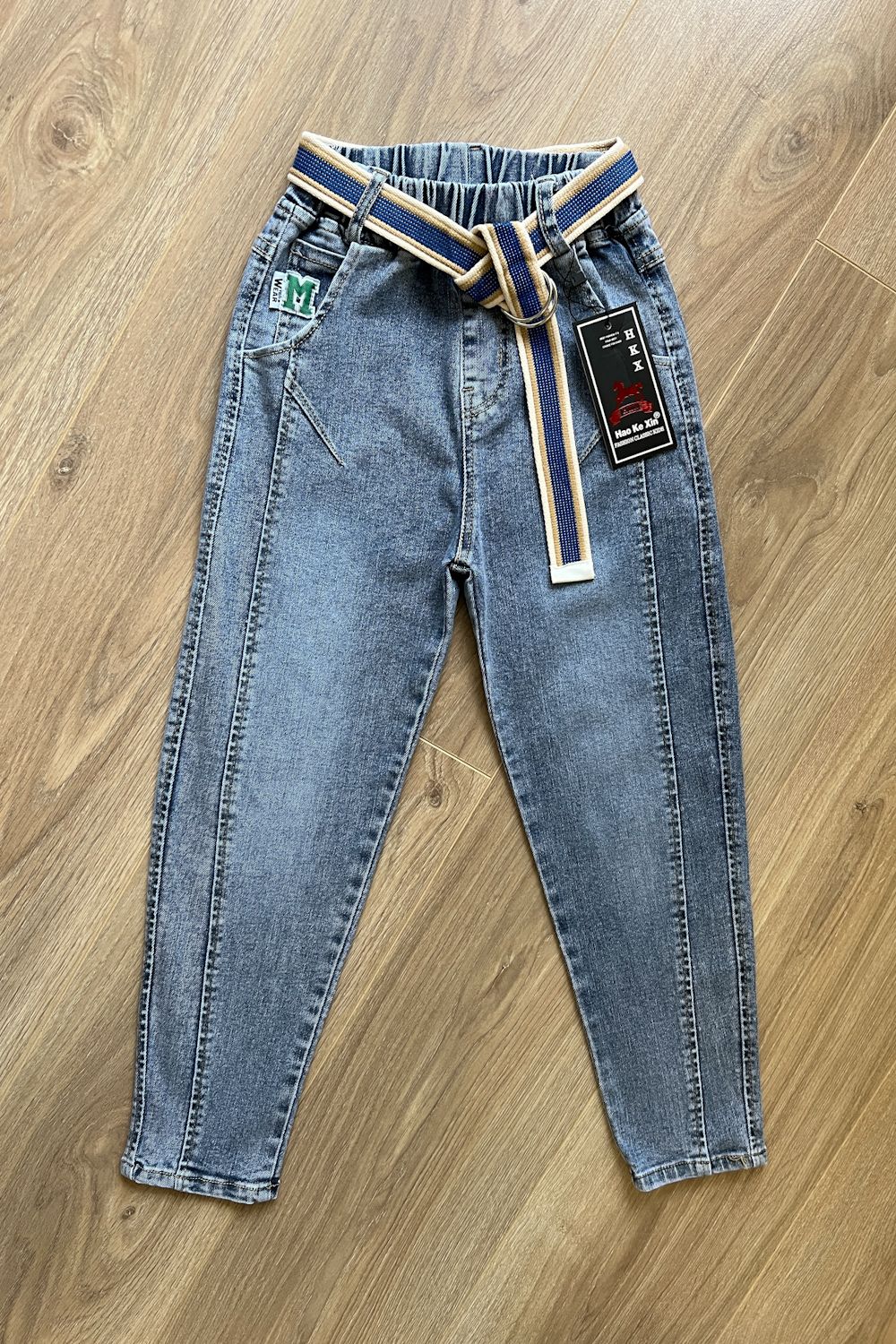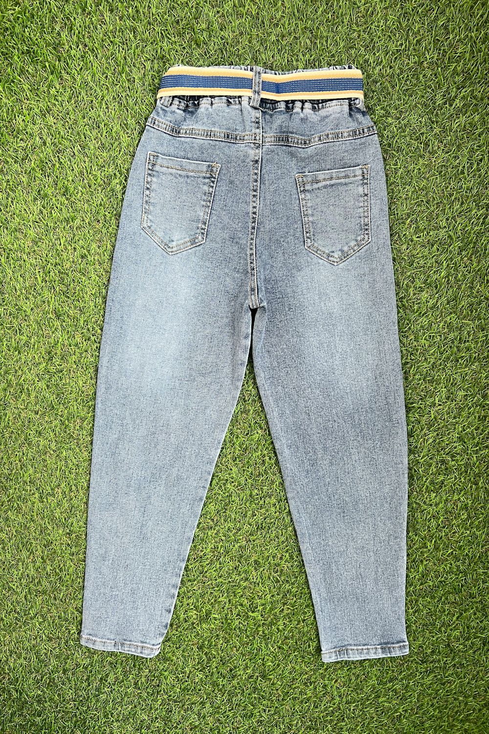 Стильные голубые джинсы на резинке зауженные снизу. Модель дополнена функциональными карманами по бокам. Сочетайте вещь с любыми футболками и рубашками и получайте новые крутые образы на каждый день Текстильный ремень в комплекте.