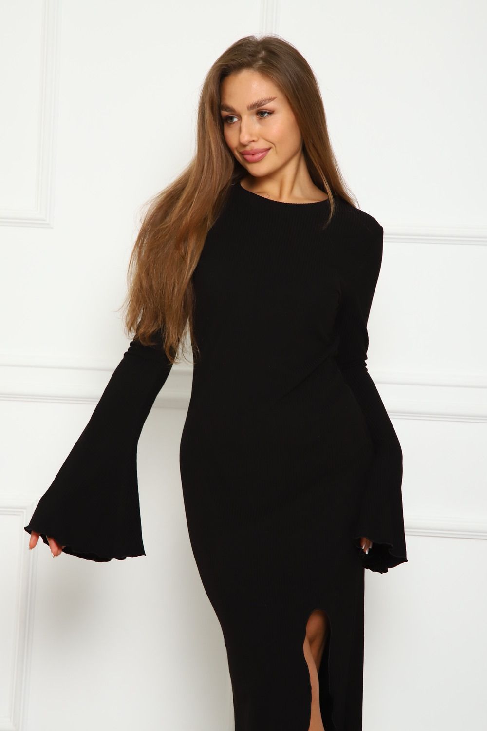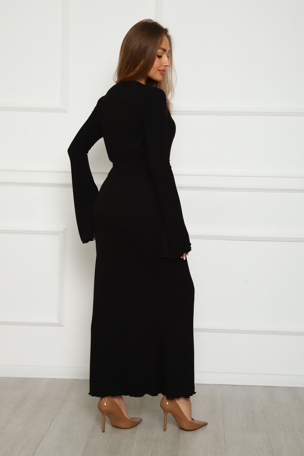 Женское обтягивающее трикотажное платье лапша – это роскошная универсальная модель для стильного и трендового образа. С длиной в пол оно идеально подходит как для повседневного использования в демисезонное время, так и для вечерних мероприятий летом или поход в ресторан на свидание зимним вечером. Стильный приталенный крой обрамляет фигуру, а утягивающие завязки придают стройный женственный силуэт, сочетая в себе нежность и элегантность. Этот модный наряд со шнуровкой отлично сочетается с различными аксессуарами. В основе платья - трикотажный однотонный материал, обеспечивающий качество и комфорт при носке. Приятное к телу теплое полотно позволяет коже дышать, долго сохраняет первоначальный вид и стиль платья. Длинные расклешенные широкие рукава добавляют изысканности обтягивающему платью в рубчик и гармонично завершают композицию. Возможность комбинировать с любой обувью, будь то летние ботинки, зимние туфли или кеды, дает шанс создавать луки для любого сезона, будь то весна или осень. Этот фасон исключительно универсален: он подойдет для офиса, прогулок или праздничных торжественных событий таких как, день рождения, вечеринка, фотосессия, корпоратив, на новогоднее мероприятие или просто выход в клуб. Красивый внешний вид делает его идеальным выбором в праздник для девушек и женщин всех возрастов, подросткам для школьных молодежных торжеств, девушкам на весеннюю прогулку и для деловой встречи, подружкам невест на свадебное мероприятие. Это шикарное коктейльное черное платье можно носить каждый день или сохранить для особых случаев – его привлекательность от этого не изменится.