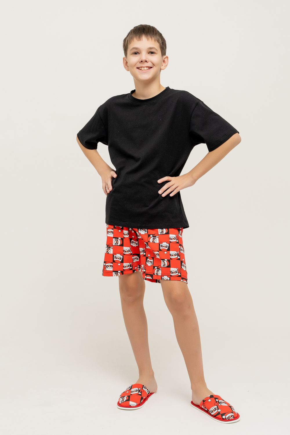 .Детские новогодние шорты "Санта" - это идеальный выбор для создания праздничного настроения! Сделаны из мягкого и приятного к телу материала (95% хлопок, 5% лайкра), они обеспечат максимальный комфорт вашему ребенку во время новогодних праздников. Универсальный дизайн в стиле family look позволит всей семье выглядеть стильно и празднично. Шорты имеют среднюю посадку, гладкую фактуру и удобный крой, что делает их идеальными как для домашнего уюта, так и для активных игр. Яркий новогодний рисунок с изображением Санта Клауса добавит праздничного настроения любому образу. Шорты для мальчика и девочки с ярким дизайном Санта – отличный выбор для вашего ребенка. Эти стильные шорты идеально подойдут для активного отдыха, прогулок и игр. Изготовленные из качественного и легкого материала, они обеспечивают комфорт и свободу движений. Благодаря оригинальному принту с изображением Санты, такие шорты выделят вашего ребенка среди сверстников и добавят нотку яркости в его гардероб. Шорты имеют удобный крой и легко регулируются по размеру, что делает их идеальными для детей разного возраста. Эти шорты подойдут для сочетания с различными футболками и топами, что позволяет создавать множество стильных образов. Не упустите возможность порадовать своего ребенка модными шортами с неповторимым дизайном, которые подарят яркие моменты.