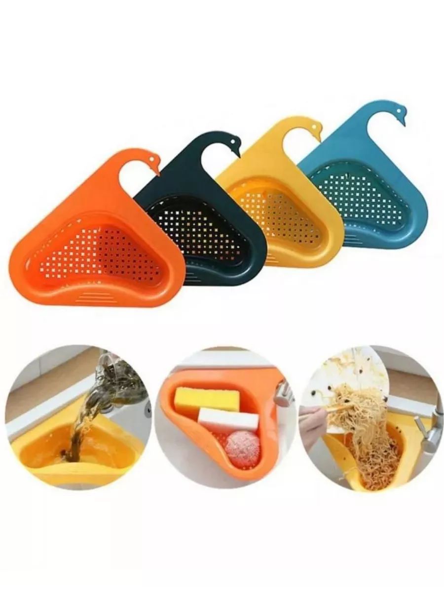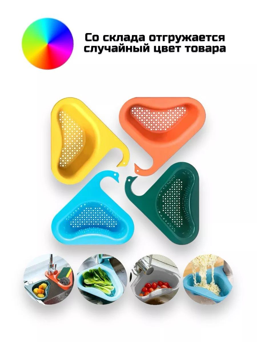 Дуршлаг на раковину для мытья овощей и фруктов - это вещь, полезная для жизни, упрощающая поддержание порядка на кухне. Дуршлаг в форме треугольной корзины (как лебедь) крепится на угол раковины. Выполнена из пищевого гипоаллергенного пластика высочайшего качества. Корзина универсальная устанавливается на раковину мойку, одновременно служит и сушилкой для посуды, и дуршлагом для фруктов и овощей, и подставкой для моющих средств, губки для мытья посуды и дозатора мыла. Органайзер для кухни выполнен в виде подвесной корзины с решеткой, отверстиями для оттока воды. У пластиковой сушилки удобные ручки, за которые ее удобно переносить. На ней удобно мыть фрукты и зелень, а также чистить овощи, не засоряя сток раковины.