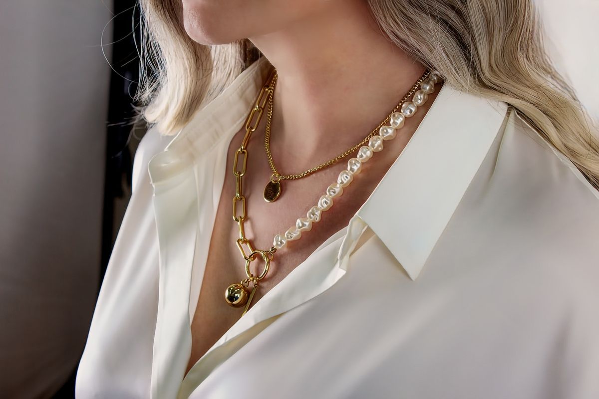 Двойное колье "Тандем стиля" цепи с жемчугом и подвесками + Подарок, в подарочном мешочке: полновесное изделие из экологичного сплава, с премиальной обработкой звеньев – они глянцевые и гладкие, а цвет изделий подобен ценным металлам. Изысканное и утонченное двойное колье под золото с бусами из искусственного жемчуга. Объемная длинная цепочка с подвеской в ярком винтажном стиле old money – элегантное декоративное украшение на каждый день и для особого случая. Колье украшено кулоном – круглым плоским медальоном, золотым шаром и бусинами из жемчуга. Стильные изящные цепи в креативной форме крупных звеньев из металла золотого цвета. Шейные чокеры средней длины всегда актуальны. Массивные аксессуары под винтаж на пике популярности в бижутерных украшениях. Необычное модное крупное украшение - популярный тренд также и 2025 года. Оно шикарно дополнит любой образ. Минималистичный дизайн и размер колье подходит для молодой девушки или взрослой женщины. А универсальный стиль ожерелья идеально дополнит ваш вечерний или молодежный кежуал наряд, праздничный свадебный образ невесты, классический имидж в офис или просто повседневные вечера. Жемчужная цепочка на шею станет акцентом, подчеркнув Вашу индивидуальность и стиль.
