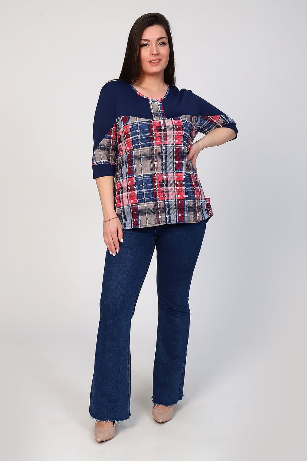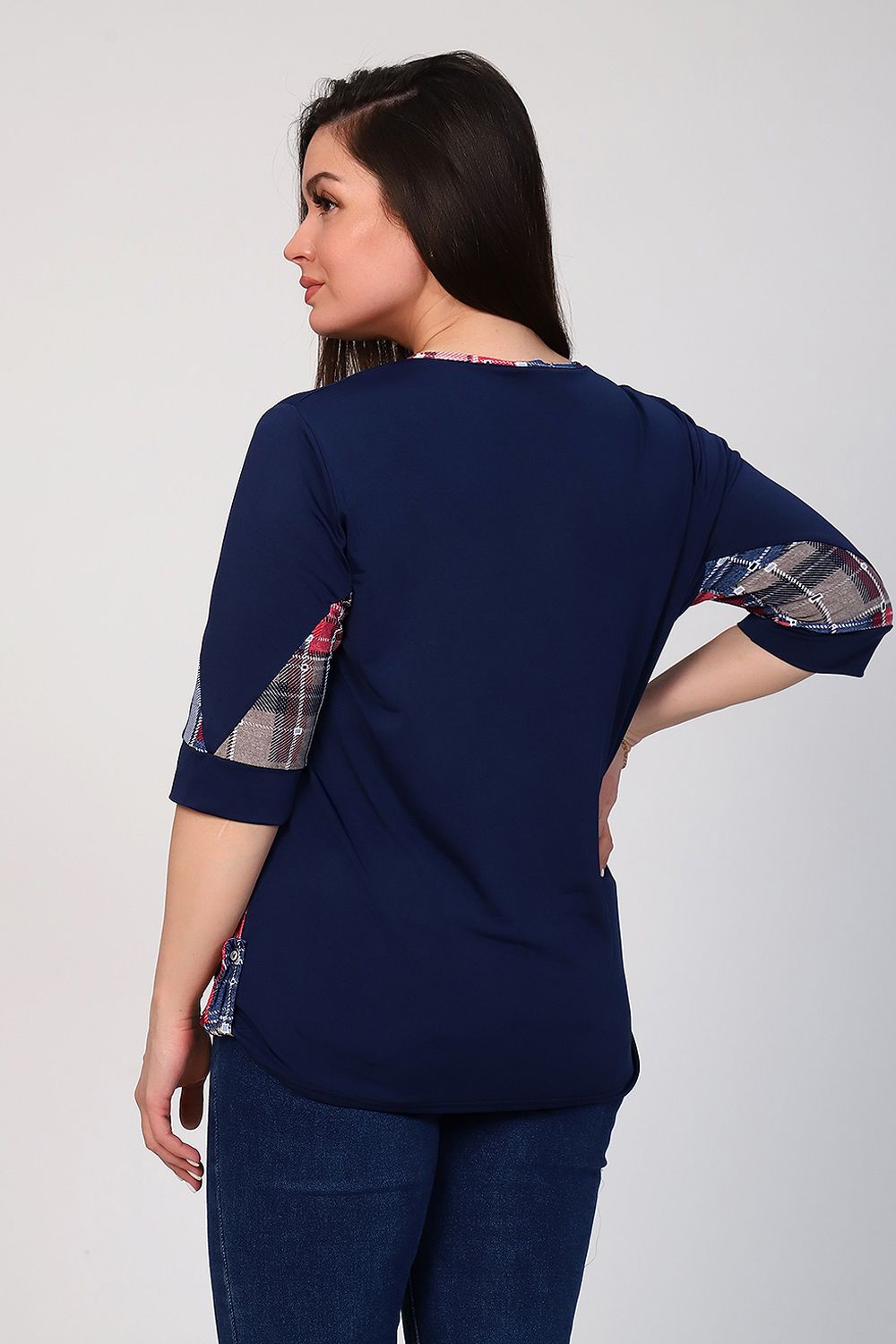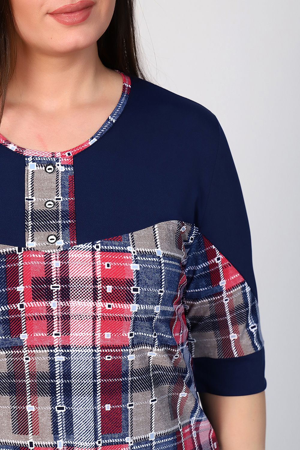 Туника прямого кроя, рукав 3/4 на манжете, вырез округлый отделан кантом. Передняя полочка на кокетке, низ изделия подобран на паты.