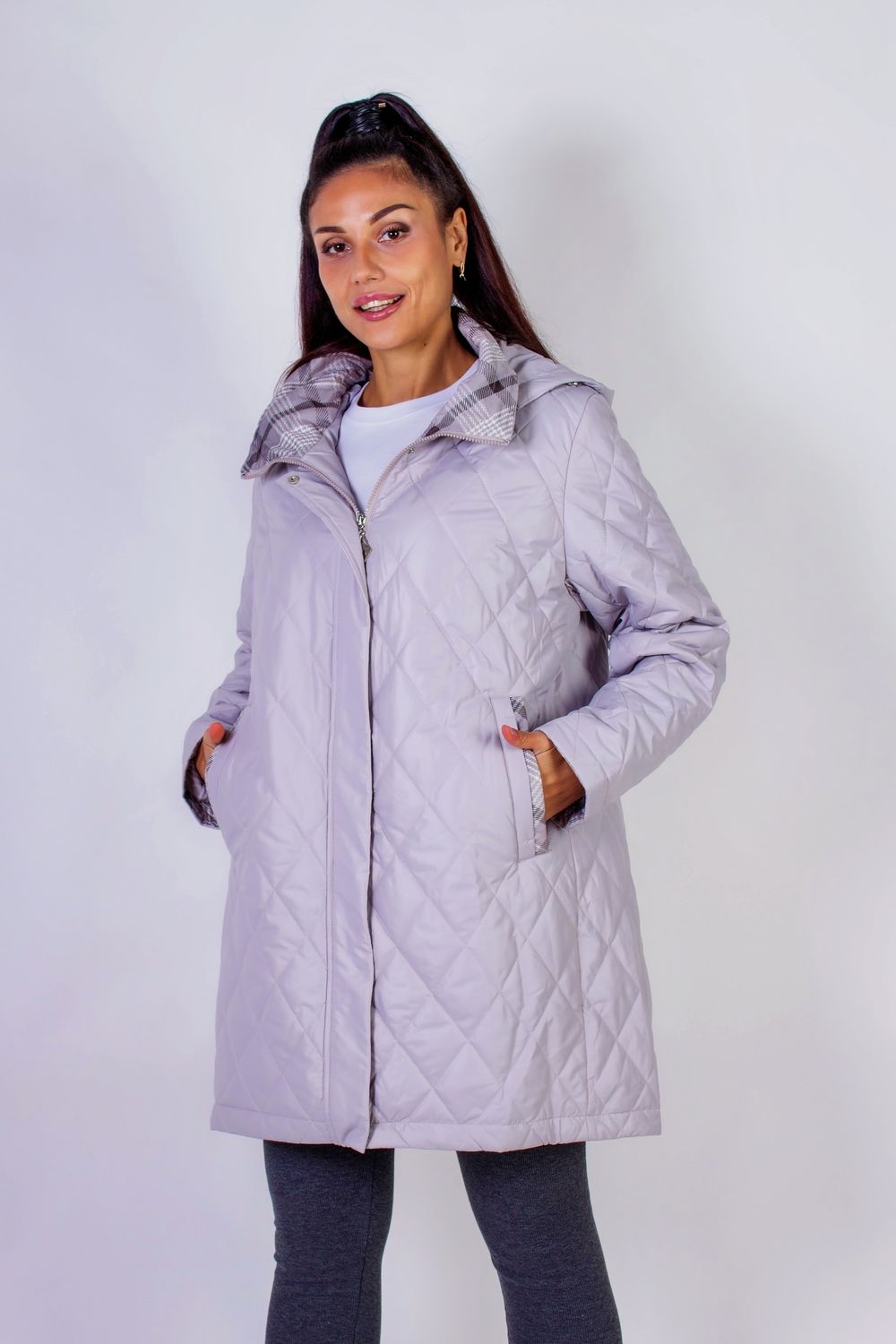 Элегантная демисезонная куртка с капюшоном Клетка арт.339