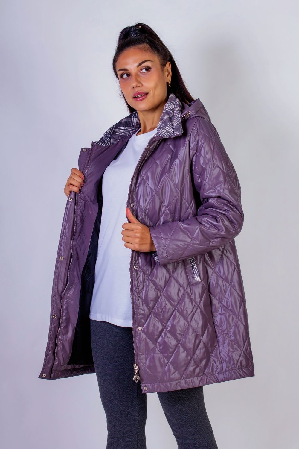 Элегантная демисезонная куртка с капюшоном Клетка арт.339