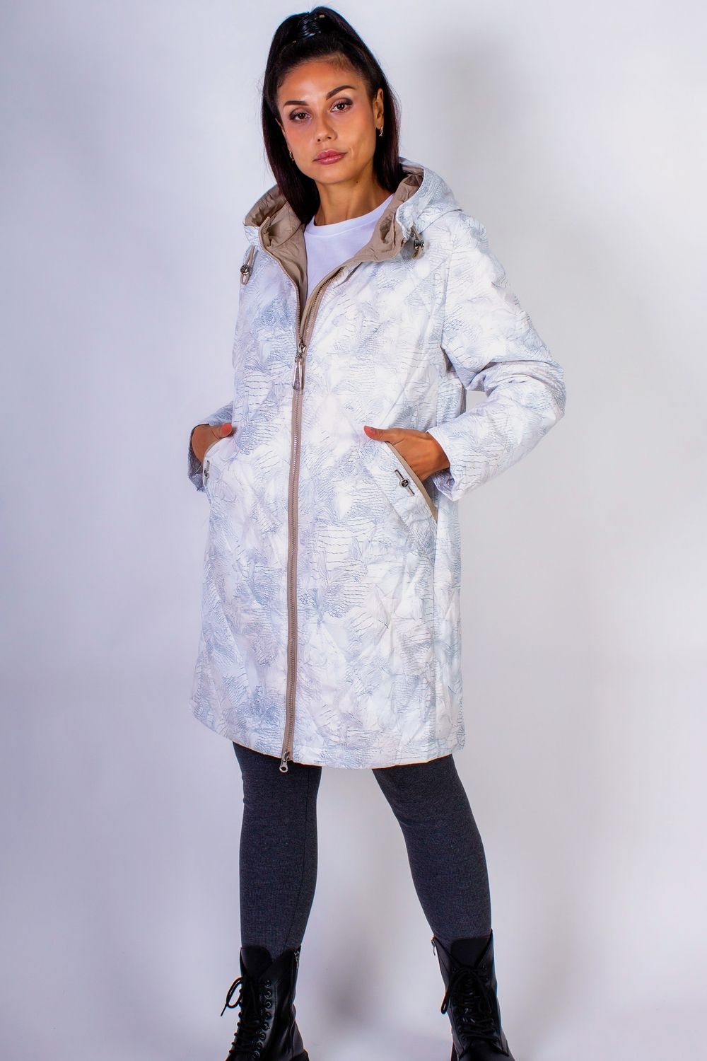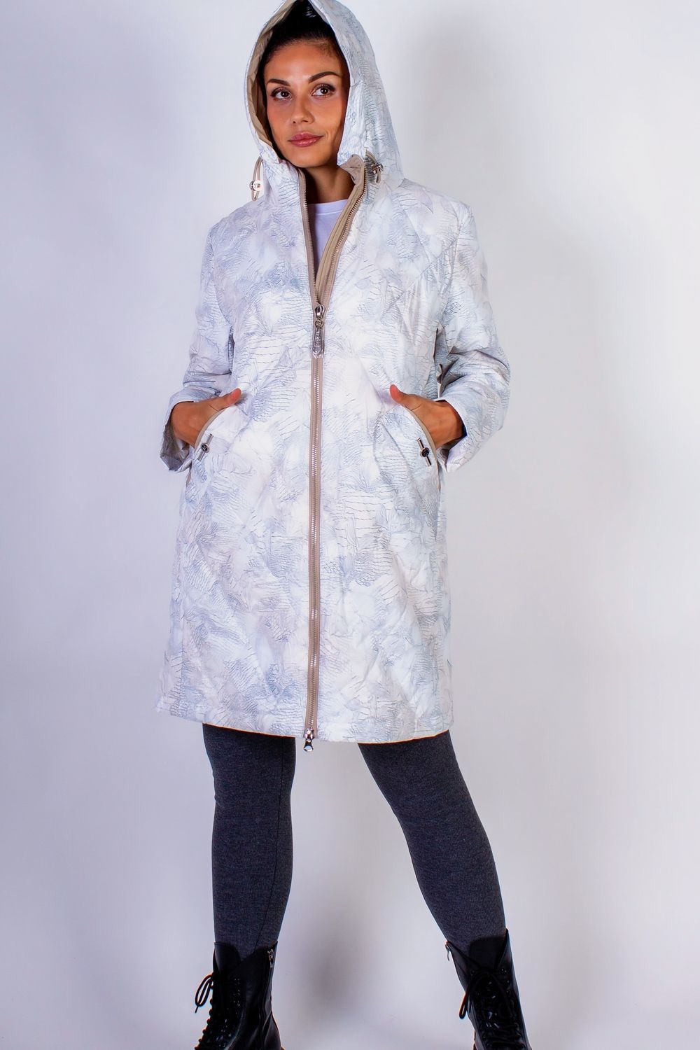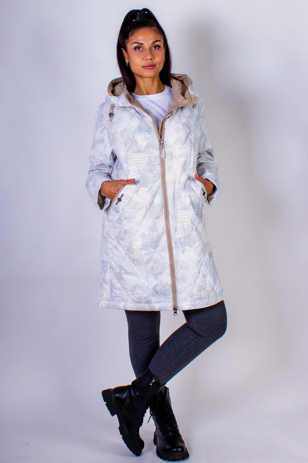 Элегантная демисезонная куртка с капюшоном — идеальное сочетание стиля, комфорта и функциональности. Эта куртка станет вашим незаменимым спутником в прохладные дни, обеспечивая надежную защиту от ветра и холода, и придавая вашему образу утонченный вид. Изготовленная из качественных материалов с тщательным пошивом и надежной фурнитурой, куртка гарантирует долговечность и высокую износостойкость. Обратите внимание на продуманные детали: капюшон с фиксаторами позволяет удобно регулировать его объем в зависимости от погодных условий, а двусторонняя молния с внутренней планкой защищает от сквозняков. Боковые карманы, закрывающиеся на кнопки, добавляют практичности, позволяя хранить важные мелочи под рукой. Куртка имеет прямой крой, который обеспечивает свободу движений и подходит для активного городского стиля жизни. Созданная с использованием качественного холофайбера, данная куртка гарантирует отличную теплоизоляцию и легкость.Особое внимание стоит уделить курточной ткани, из которой она изготовлена: она обладает специальными свойствами, благодаря которым грязь, а также шерсть домашних любимцев не прилипает к поверхности. Это делает уход за курткой простым и удобным, позволяя вам выглядеть безупречно в любое время. Современная простеганная стежка ромбом не только придает куртке стильный внешний вид, но и равномерно фиксирует наполнитель, предотвращая его скапливание в отдельных участках, что увеличивает долговечность изделия. Дизайн куртки впечатляет стильной расцветкой с утонченным растительным рисунком, сочетающим элегантные цветы и листья. Современные приглушенные оттенки бежевого, мятного и голубого делают её актуальным элементом вашего гардероба, легко комбинирующимся с различными стилями одежды. Эта куртка прекрасно дополнит как повседневные, так и более нарядные образы — её можно носить как с джинсами, так и с платьем, создавая разнообразные стильные луки. Она подчеркнет вашу индивидуальность и утонченный вкус, оставаясь при этом комфортной и практичной. Позвольте себе насладиться элегантностью и функциональностью с этой демисезонной курткой, которая будет верным спутником в холодное время года.