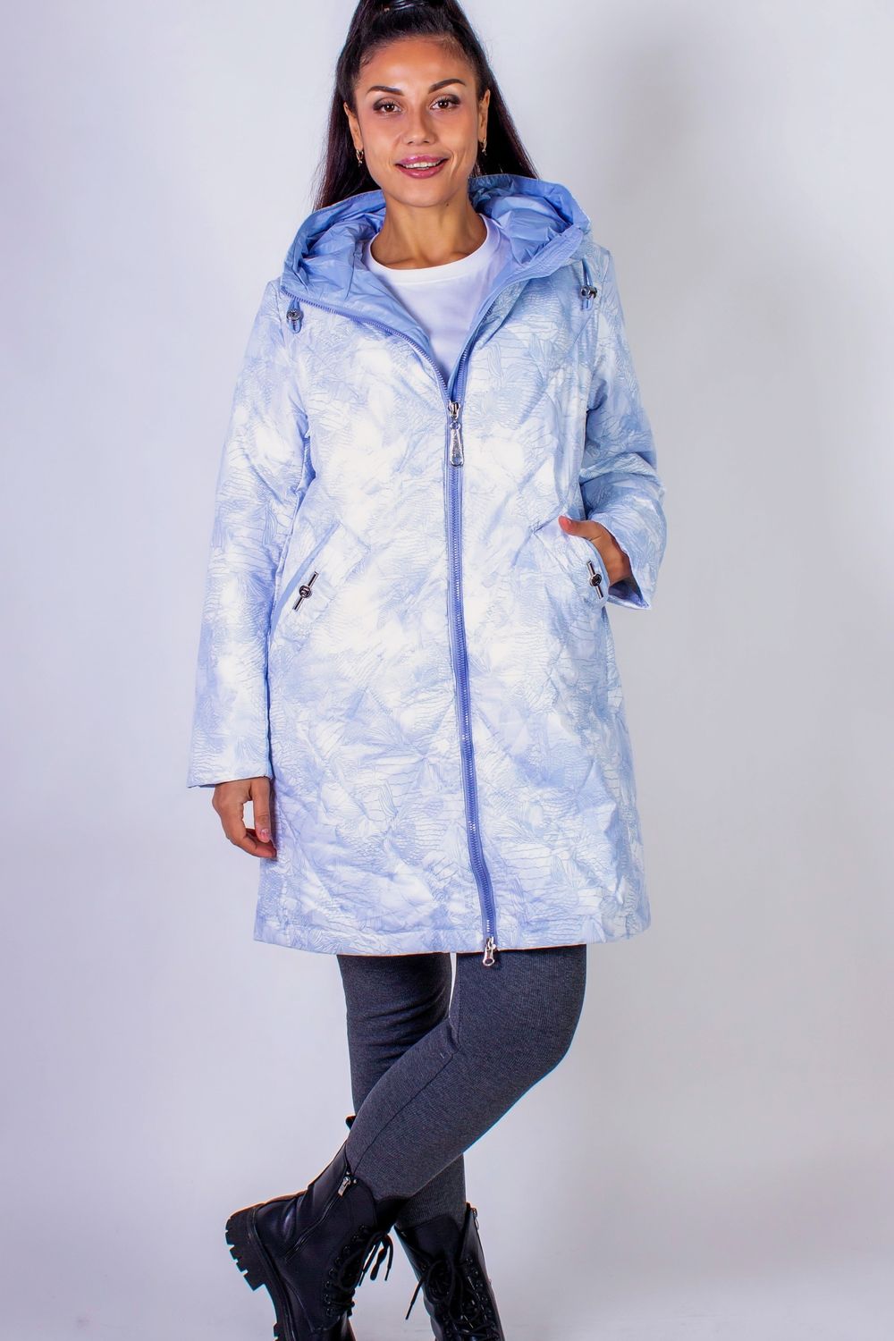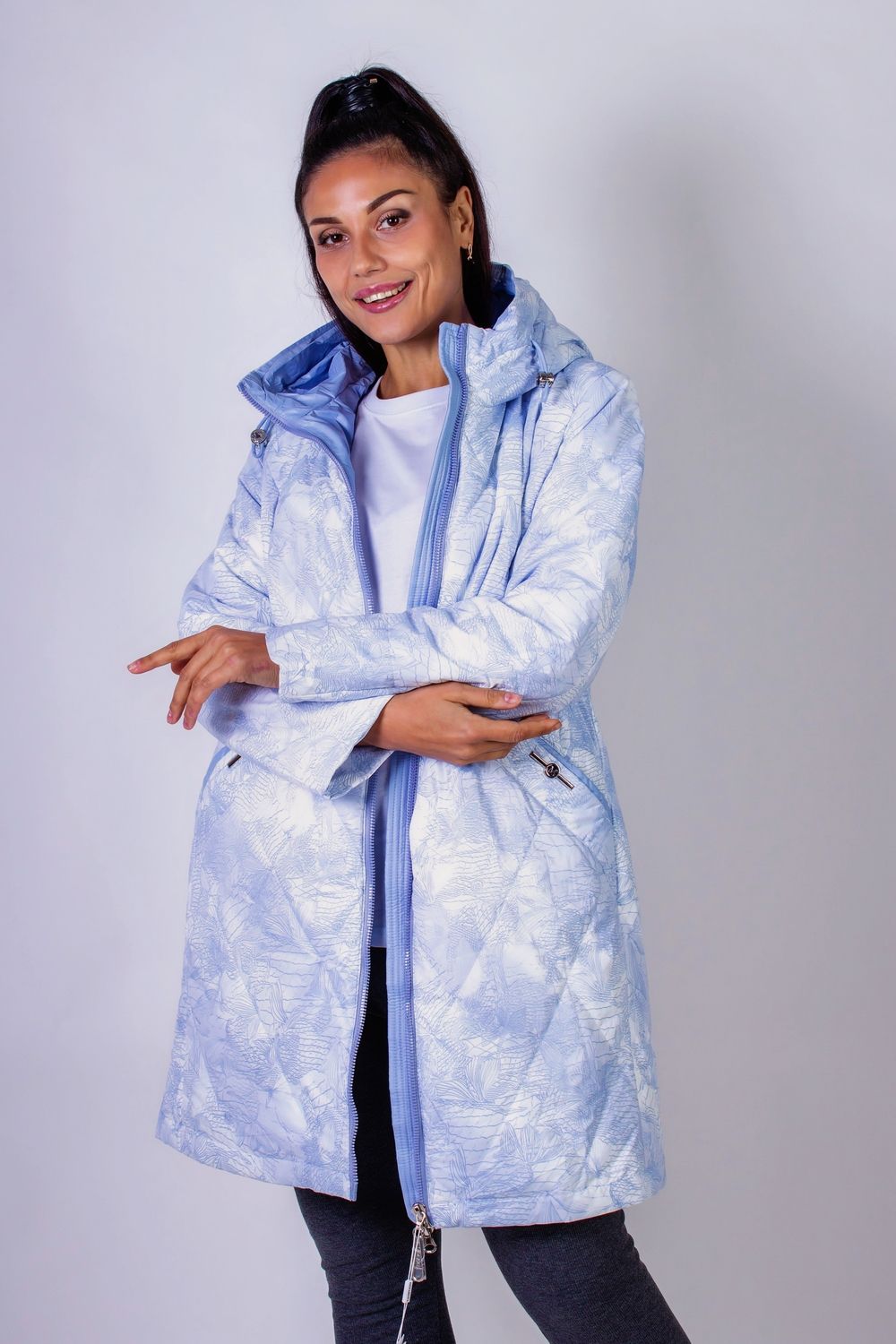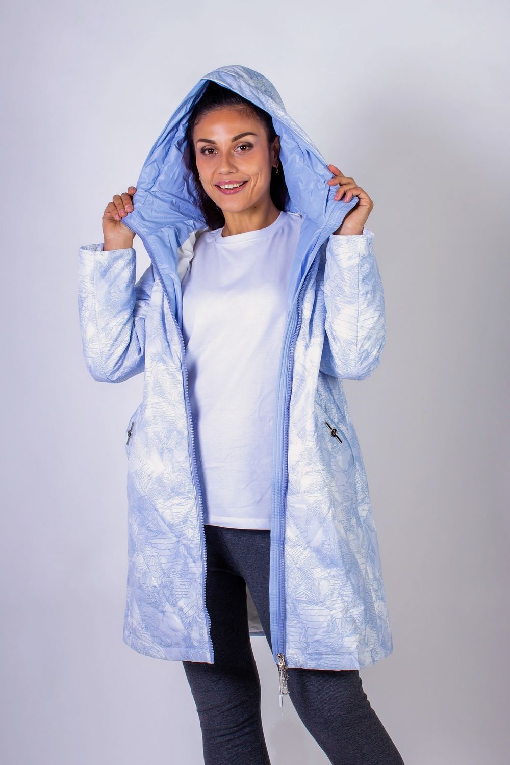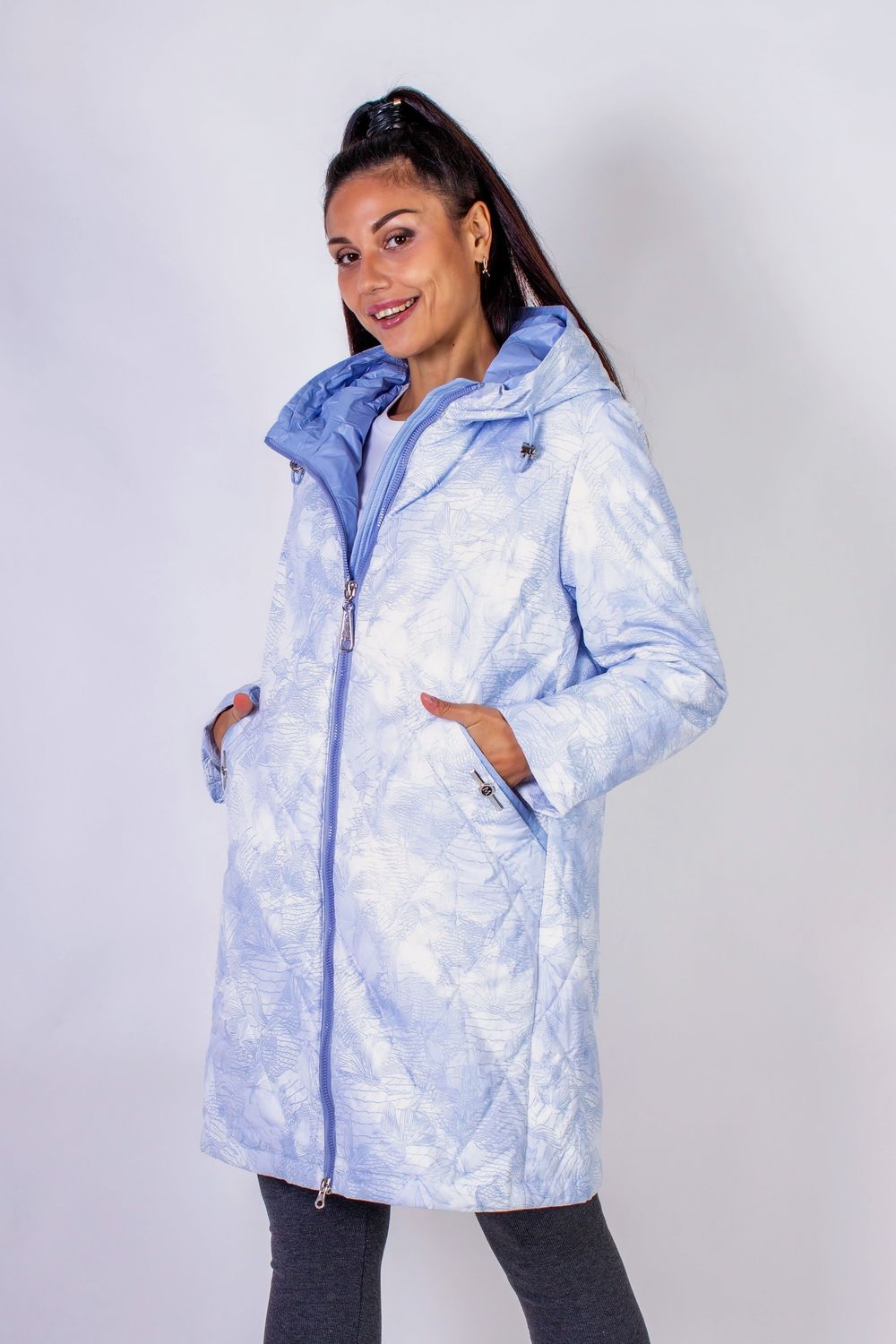 Элегантная демисезонная куртка с капюшоном Листья арт.338 - голубой