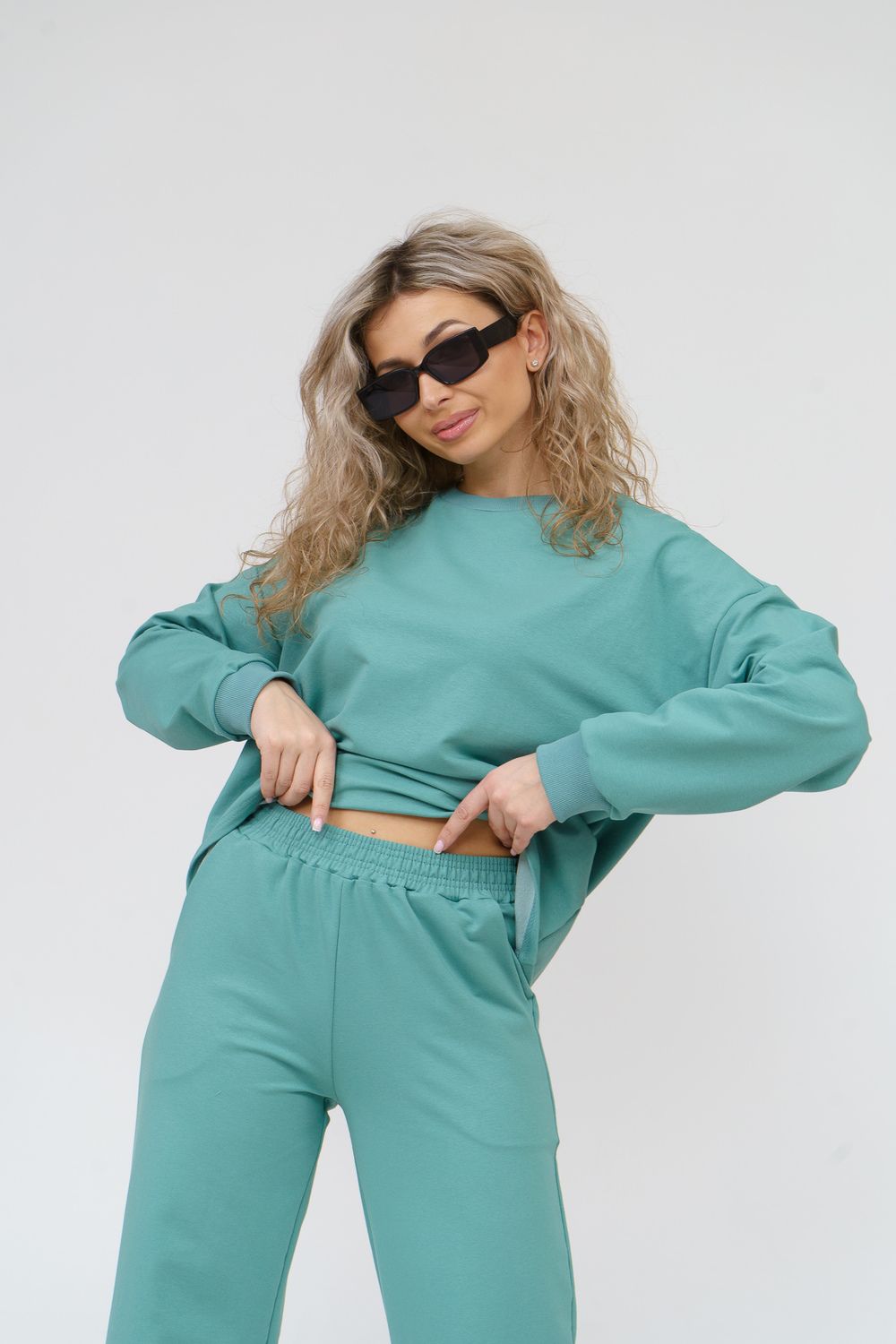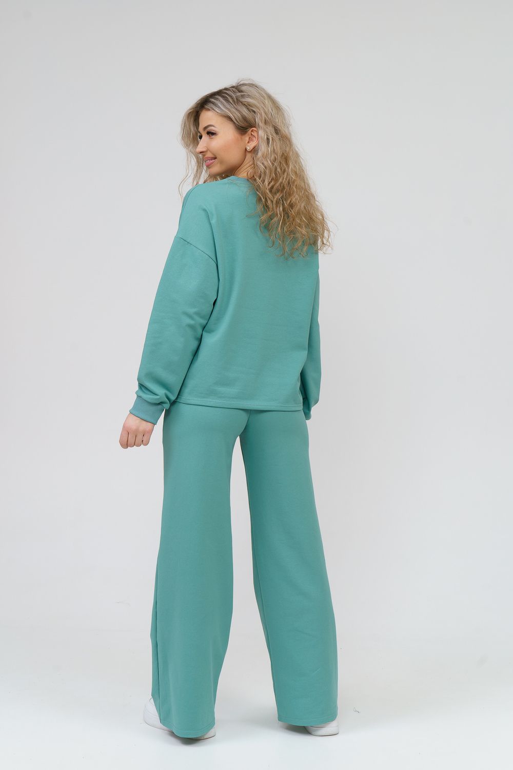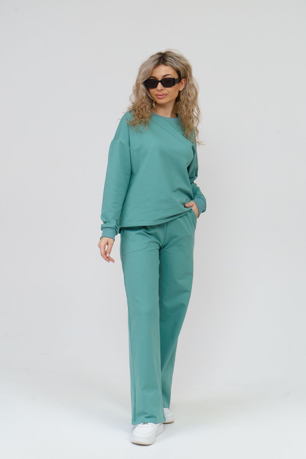 Модный спортивный костюм выполнен из плотного футера 2-х нитки высокого качества, который не линяет, не даёт усадку во время стирки, держит форму, не деформируется, а главное хорошо пропускает воздух. В состав комплекта входит свитшот с округлым вырезом горловины и стильные брюки - палаццо с высокой посадкой. Свитшот имеет свободный крой, спущенное плечо и манжеты на рукавах. Высокая посадка брюк идеально подойдёт на большие размеры и для беременных. А пояс брюк в свою очередь, выполненный на специализированной поясной машине, придаёт ещё больше удобства и комфорта. Костюм представлен в широкой размерной сетке с 42 по 56 размер, благодаря этому, Вы сможете выбрать трикотажный брючный костюм как большого размера, так и для девочки - подростка. Комплект такого плана идеально подойдёт для школы и офиса, в качестве повседневной одежды, домашнего костюма или для активного отдыха. Костюм свободного кроя не сковывает движений, отлично сидит по фигуре, скрывает все недостатки и выгодно подчёркивает достоинства. Комплект уместен в любой ситуации и будет находкой для тех, кто ценит свою индивидуальность. Купив данный костюм, Вы можете не только побаловать себя, но и преподнести в качестве подарка и порадовать других!