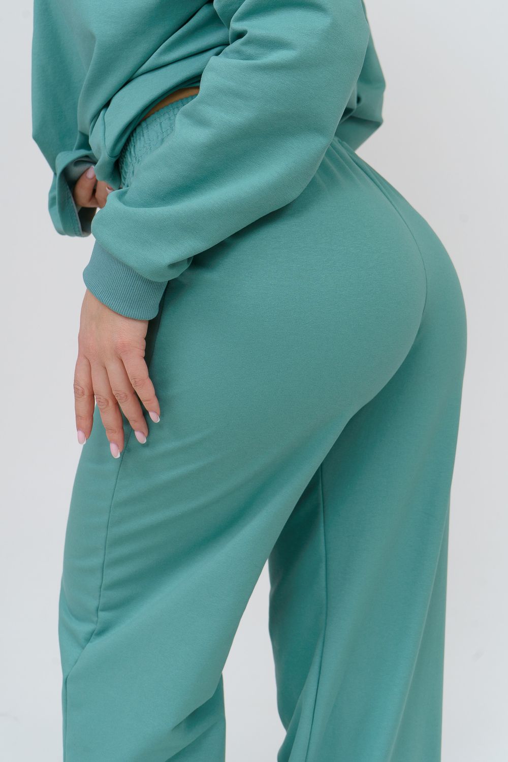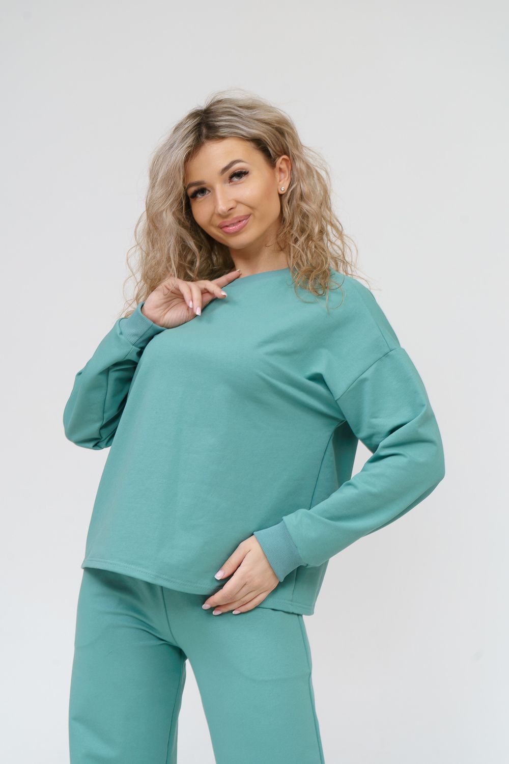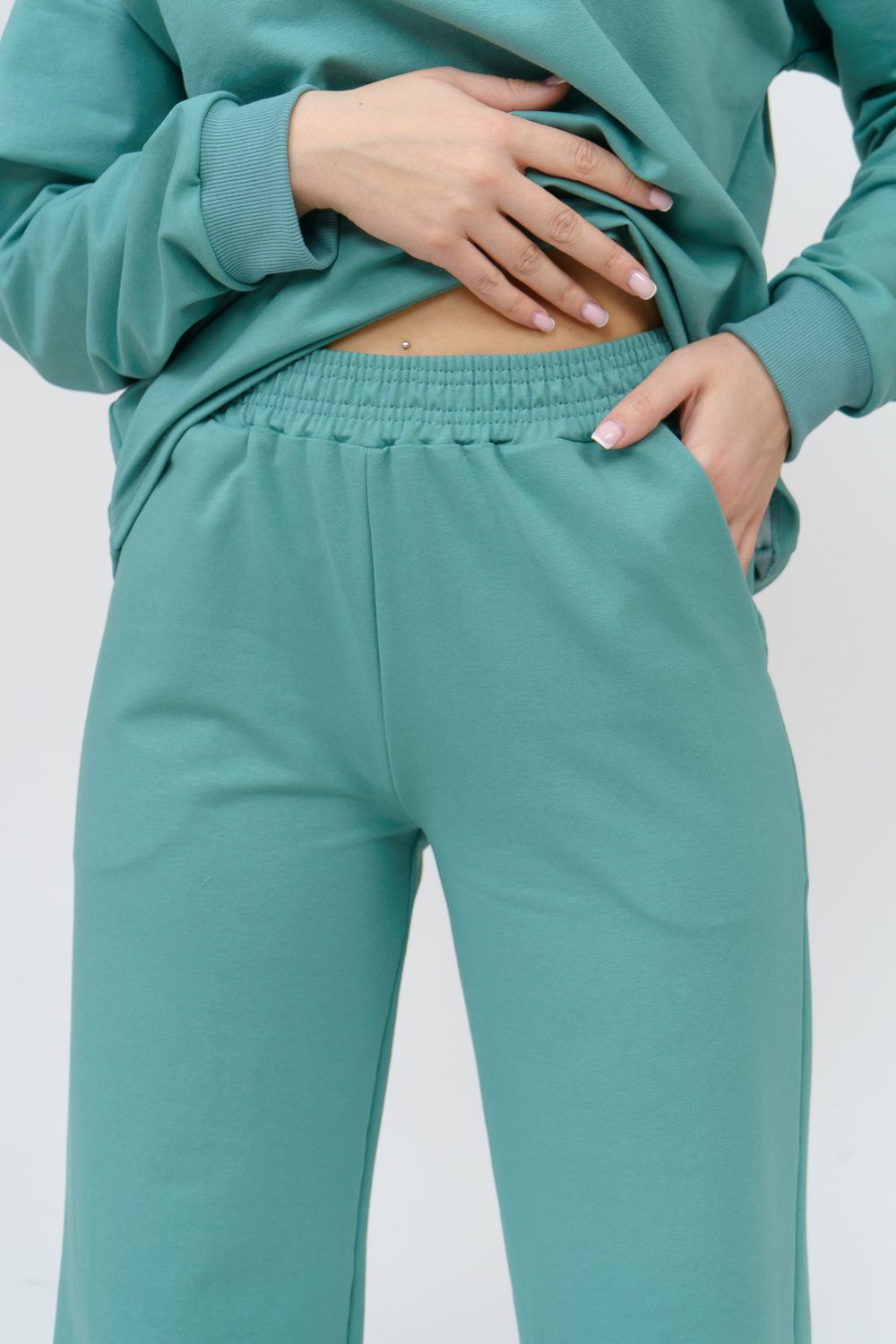 Модный спортивный костюм выполнен из плотного футера 2-х нитки высокого качества, который не линяет, не даёт усадку во время стирки, держит форму, не деформируется, а главное хорошо пропускает воздух. В состав комплекта входит свитшот с округлым вырезом горловины и стильные брюки - палаццо с высокой посадкой. Свитшот имеет свободный крой, спущенное плечо и манжеты на рукавах. Высокая посадка брюк идеально подойдёт на большие размеры и для беременных. А пояс брюк в свою очередь, выполненный на специализированной поясной машине, придаёт ещё больше удобства и комфорта. Костюм представлен в широкой размерной сетке с 42 по 56 размер, благодаря этому, Вы сможете выбрать трикотажный брючный костюм как большого размера, так и для девочки - подростка. Комплект такого плана идеально подойдёт для школы и офиса, в качестве повседневной одежды, домашнего костюма или для активного отдыха. Костюм свободного кроя не сковывает движений, отлично сидит по фигуре, скрывает все недостатки и выгодно подчёркивает достоинства. Комплект уместен в любой ситуации и будет находкой для тех, кто ценит свою индивидуальность. Купив данный костюм, Вы можете не только побаловать себя, но и преподнести в качестве подарка и порадовать других!