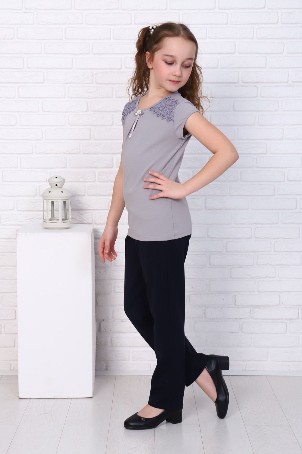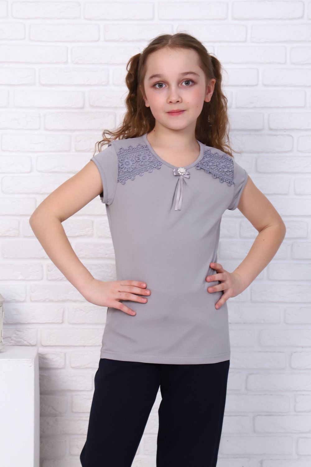 Базовая школьная блузка для девочек с коротким рукавом. Нарядная блузка станет основой как повседневного, так и праздничного образа. Мягкое кружево придает модели нежности. Спереди прикреплен съемный декоративный элемент из атласных лент и броши. Модель составит одинаково удачный комплект и с юбкой, и с брюками. Блузка сшита из качественного трикотажа, используемый материал не теряет форму после многократных стирок, мягкий и приятный к телу, устойчив к износу. Для сохранения первоначальных свойств изделия, важно соблюдать рекомендации по уходу.