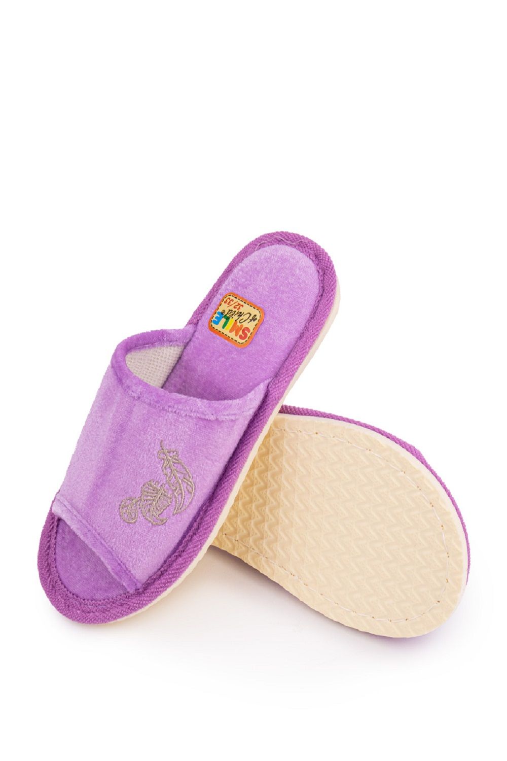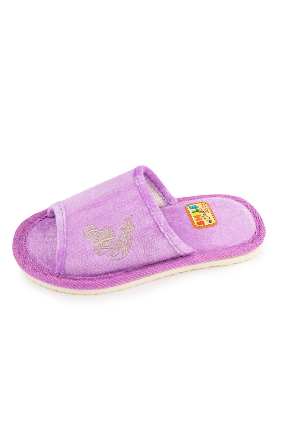 Домашние детские тапочки марки Smile of milady закрытого типа. Верх и стельки выполнены из мягкого приятного на ощупь текстиля. Легкая подошва, выполненная из экологического материала ЭВА, принимает форму стопы и амортизирует при ходьбе, вследствие чего ноги меньше устают, ходить удобнее и более комфортно. Подошва имеет противоскользящее покрытие. Данная модель представлена в трех нежных цветовых тонах: светло-зеленый, фиолетовый и оранжевый.